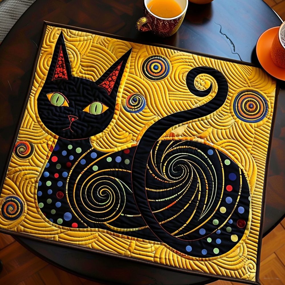 midnight cat placemat,black cat table mat,elegant quilted placemat,cotton padded mat,non-slip placemat,machine washable,cat gift