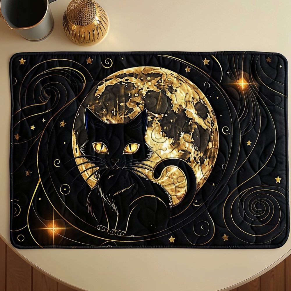 celestial cats placemat,starry cat placemat,quilted cotton placemat,elegant table decor,kitchen placemat,machine washable,giftable,cat lover