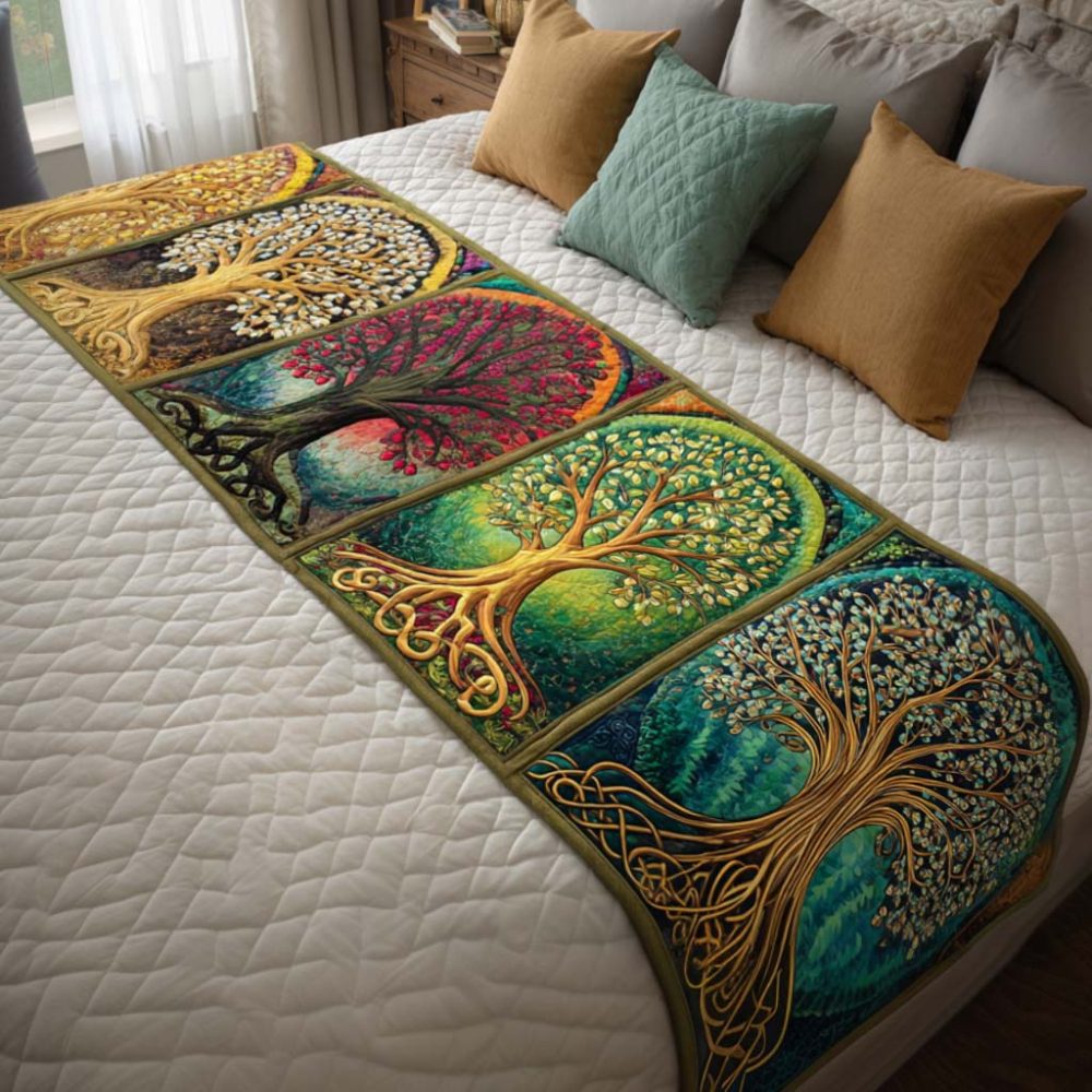 Celtic Seasons Quilted Bed Runner — Heritage-Inspired Cotton Throw With Intricate Motifs, Classic Accent For Timeless Bedrooms