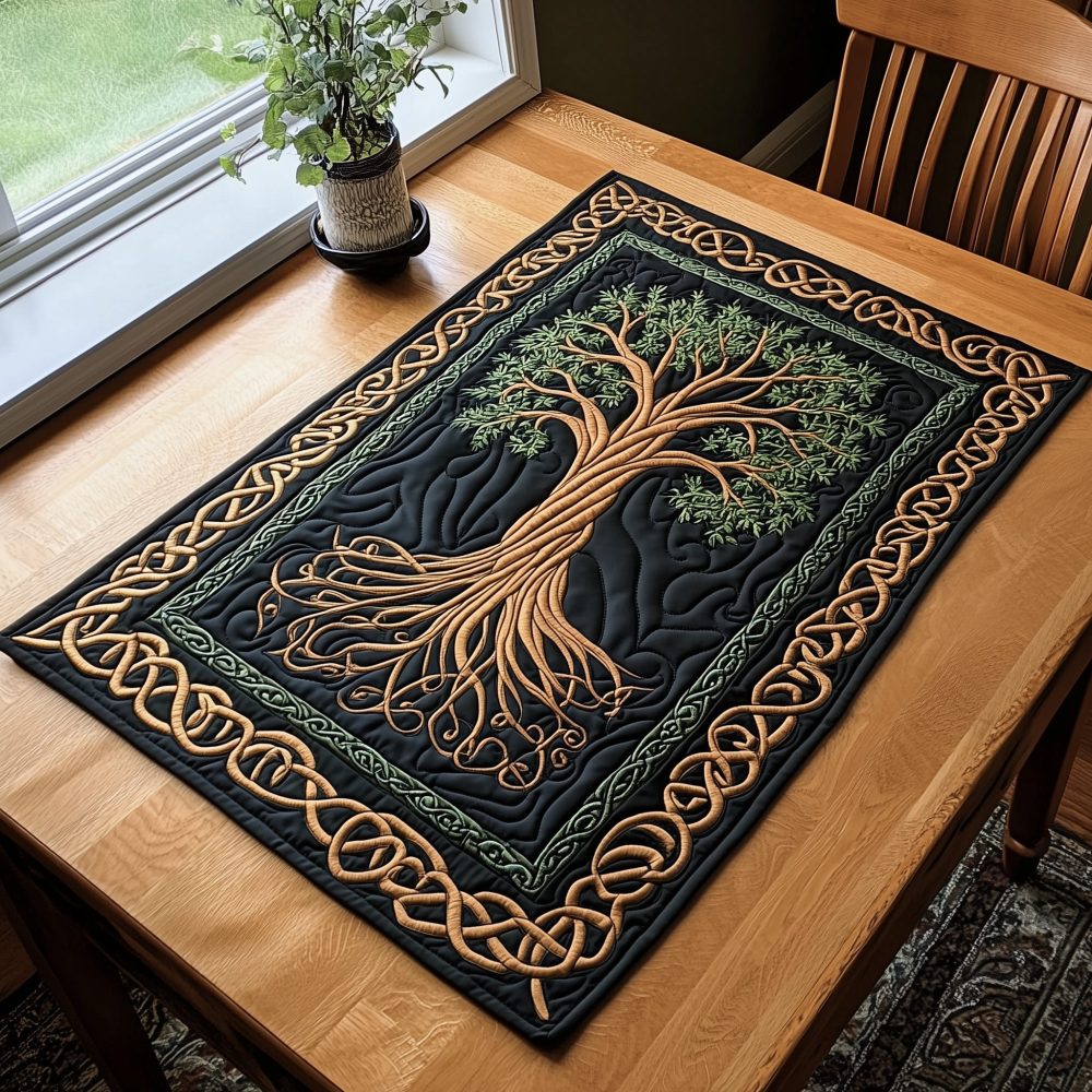 Celtic Spirit Tree Quilted Placemat — Intricate Celtic Motif, Reversible Cotton Blend, Cozy Rustic Dinner Table Accent