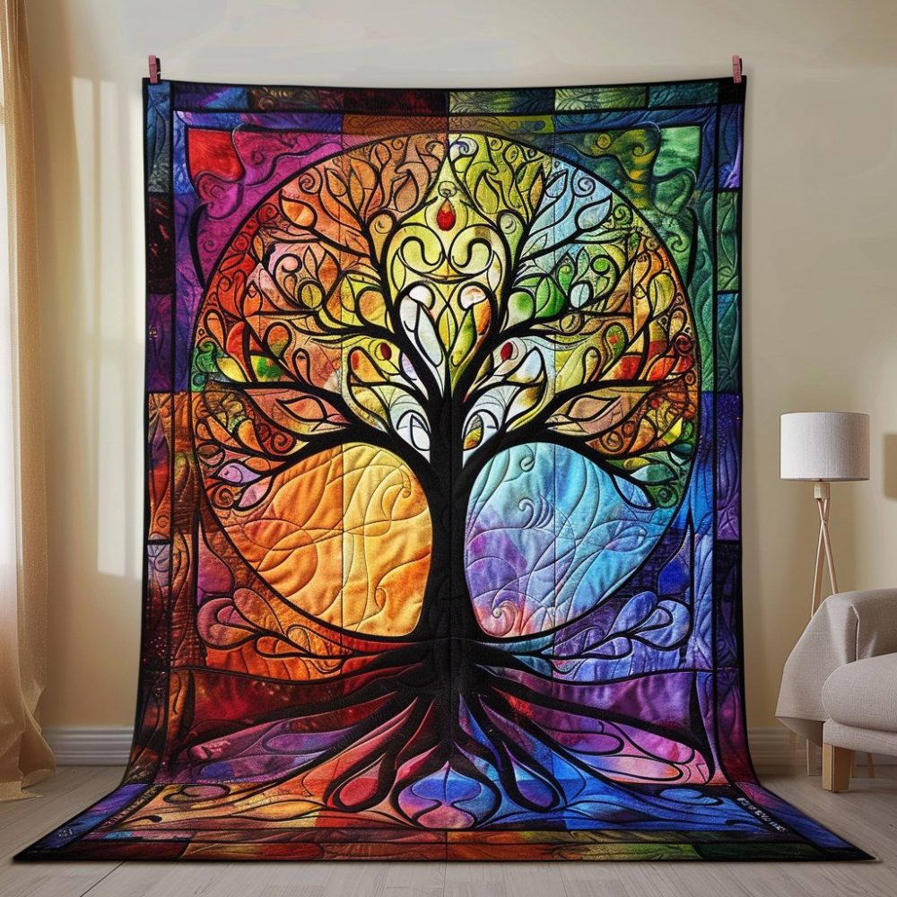 Celtic Tree Of Life Art Quilted Blanket