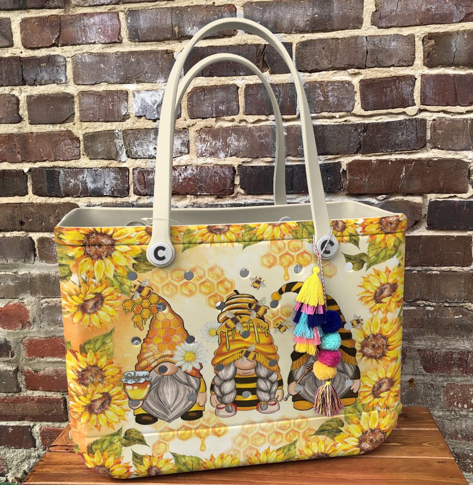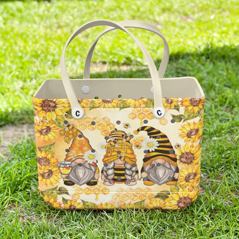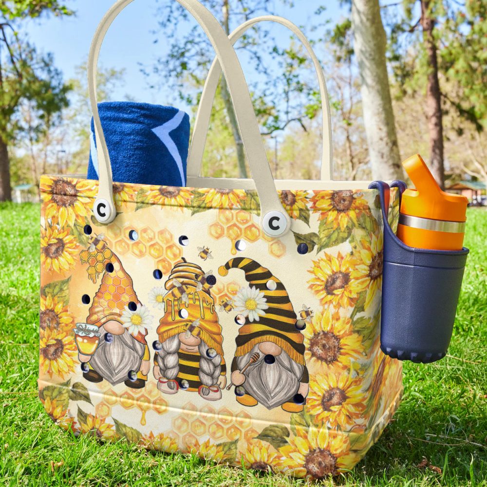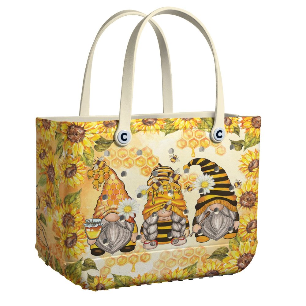Be the first to review “Charming Gnome Tote Bag With Sunflower & Honey Bee Design – Perfect For Summer Outings!”