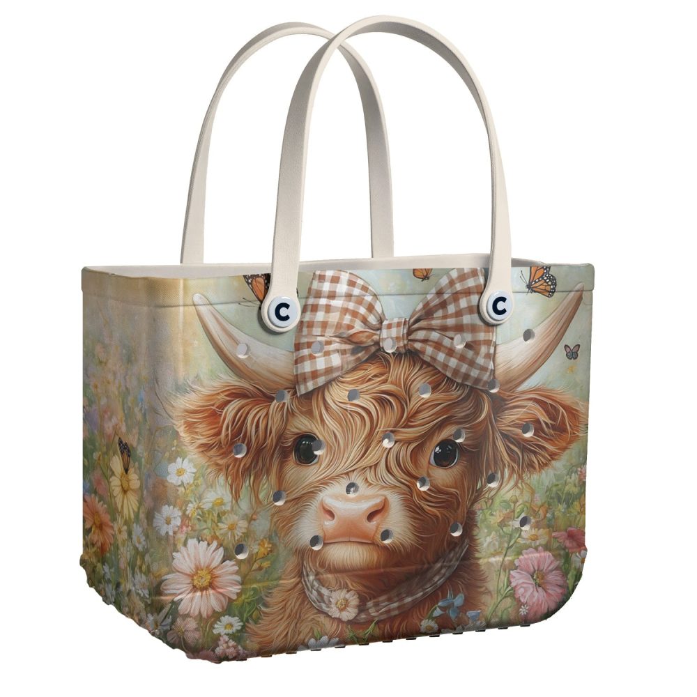Be the first to review “Charming Highland Cow Tote Bag With Bow – Floral Design, Durable & Stylish Handbag”