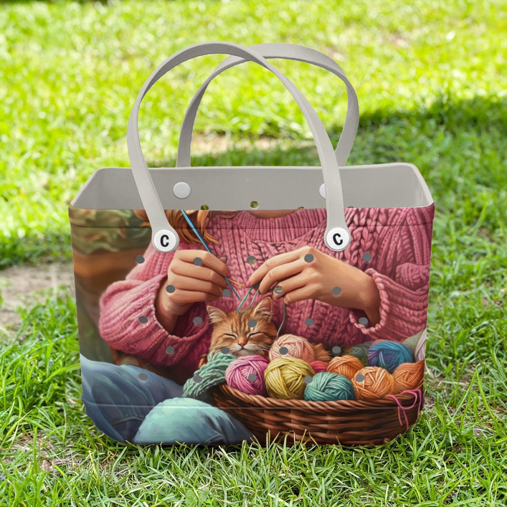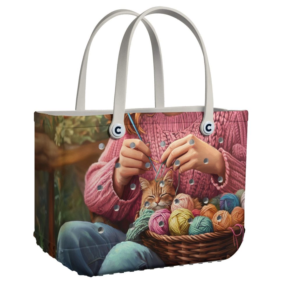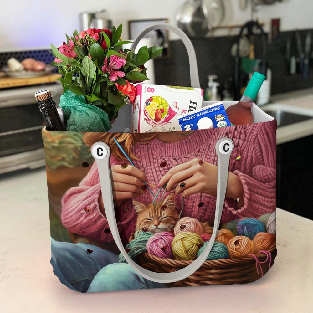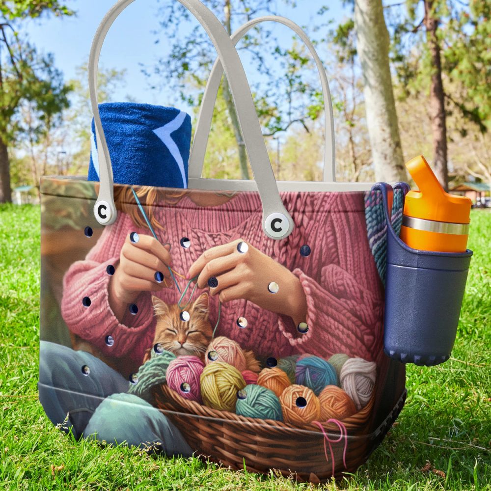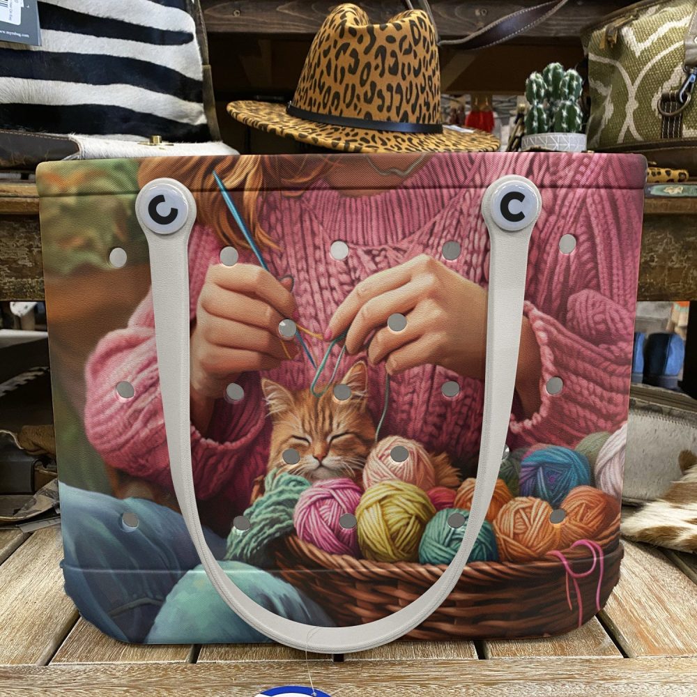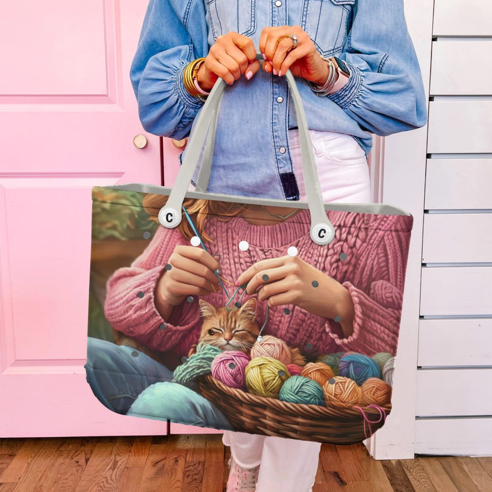 Be the first to review “Charming Knit & Cat Tote Bag – Colorful Yarn Design, Perfect For Craft Lovers”