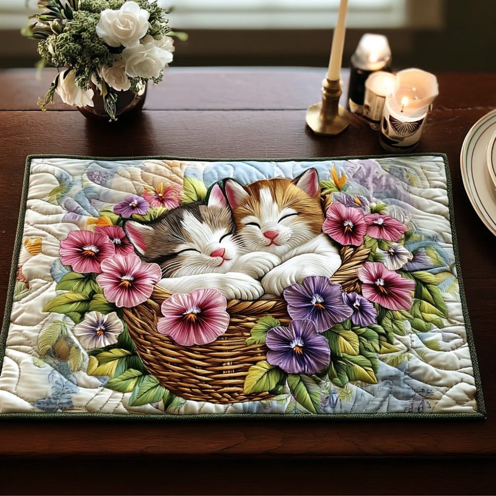 charming paws placemat, pet themed placemat, quilted table mat, washable placemat, heat-resistant placemat, family dining decor