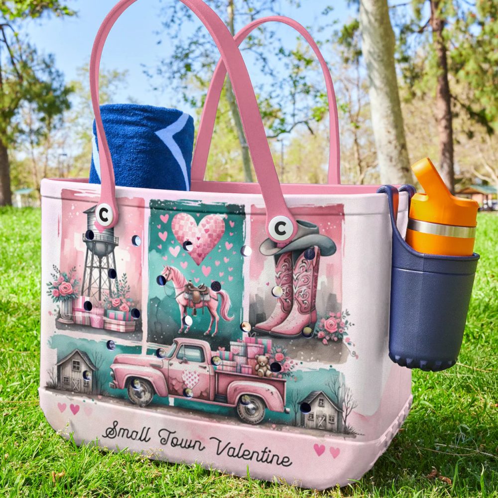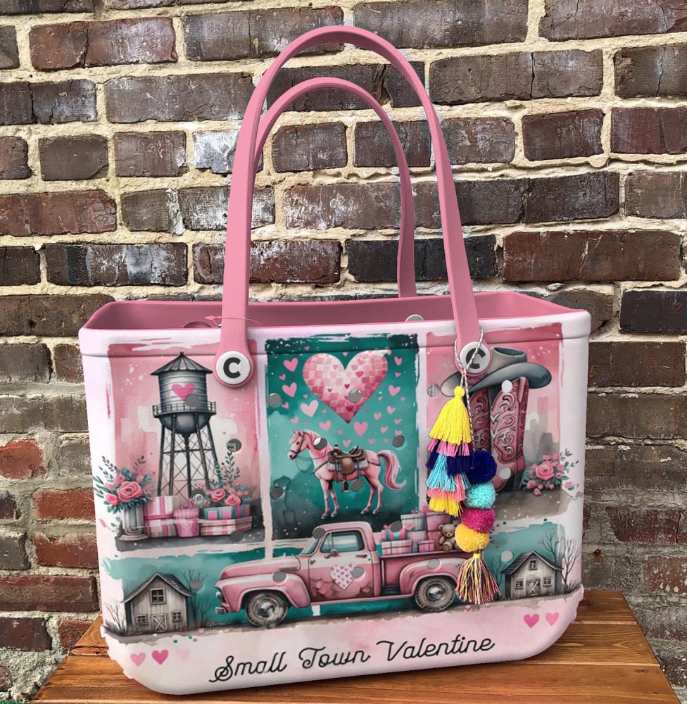 Be the first to review “Charming Pink Valentine’S Tote Bag – Rustic Small Town Love Design”
