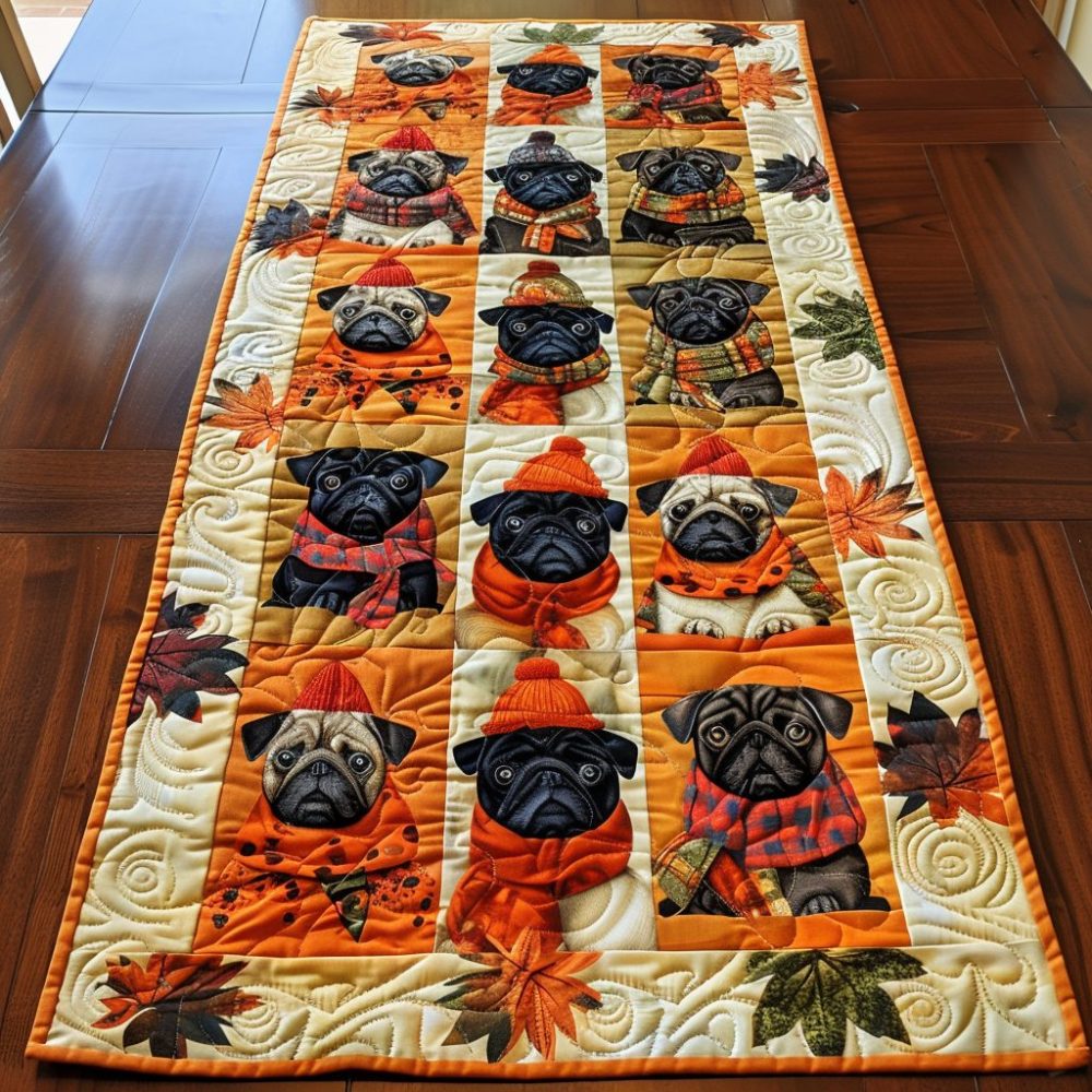 Charming Pugs Quilted Table Runner