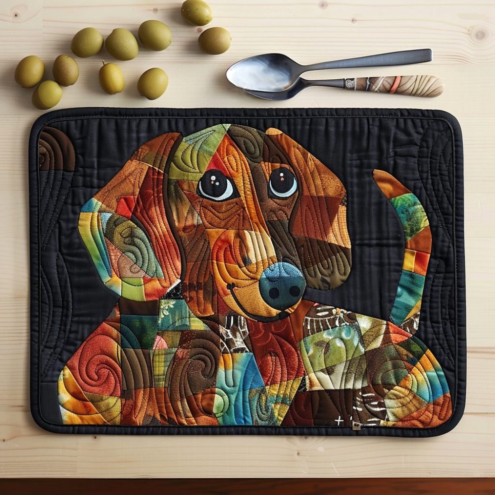 Brighten fall tables with the Autumn Dachshund Quilted Placemat featuring a cheerful sausage dog design and warm autumn hues. Made from a soft cotton blend with quilted padding to protect surfaces and absorb spills. Lightweight, machine-washable, and ideal for seasonal decor, family dinners, or pet-lover gifts. Adds playful charm while keeping your table clean and stylish.