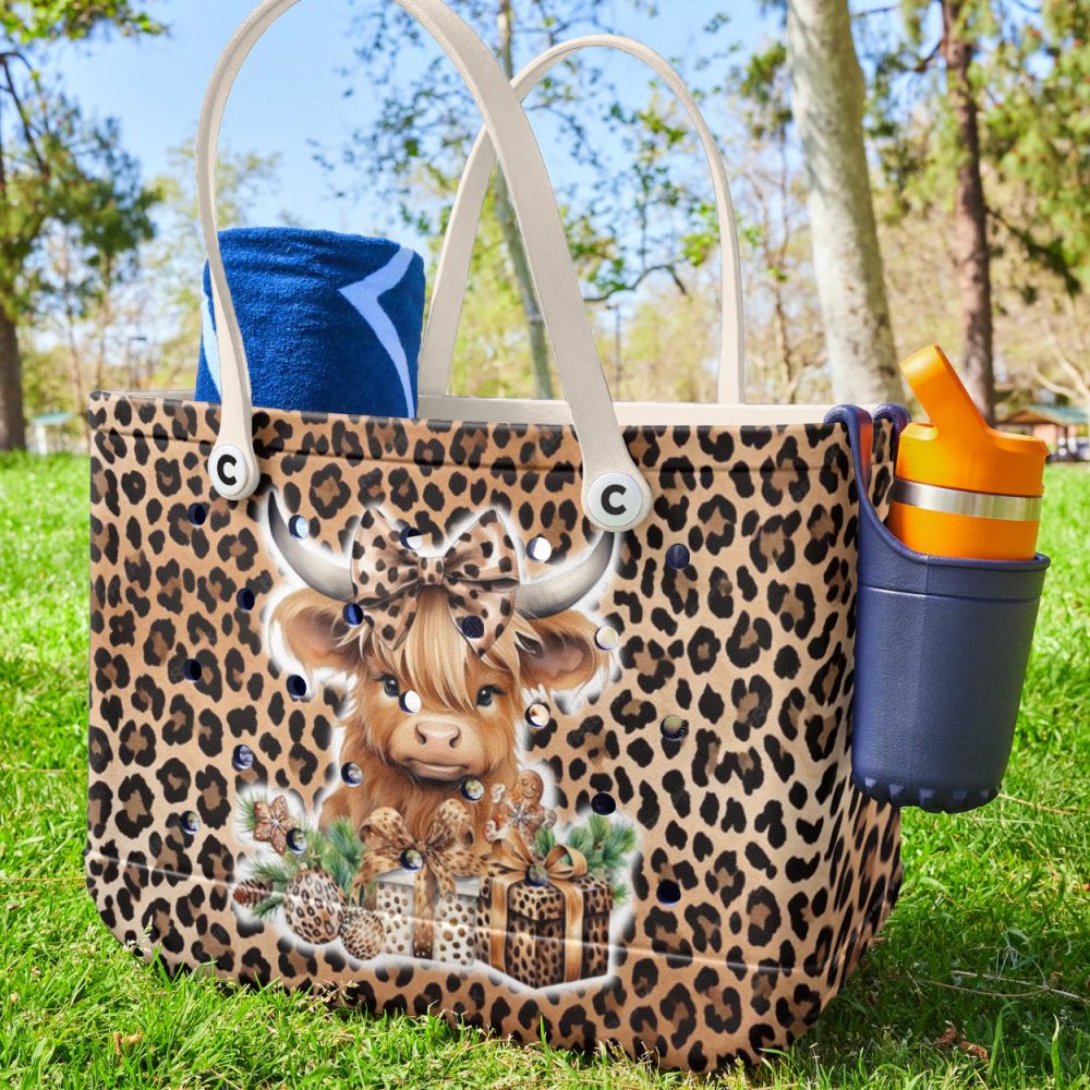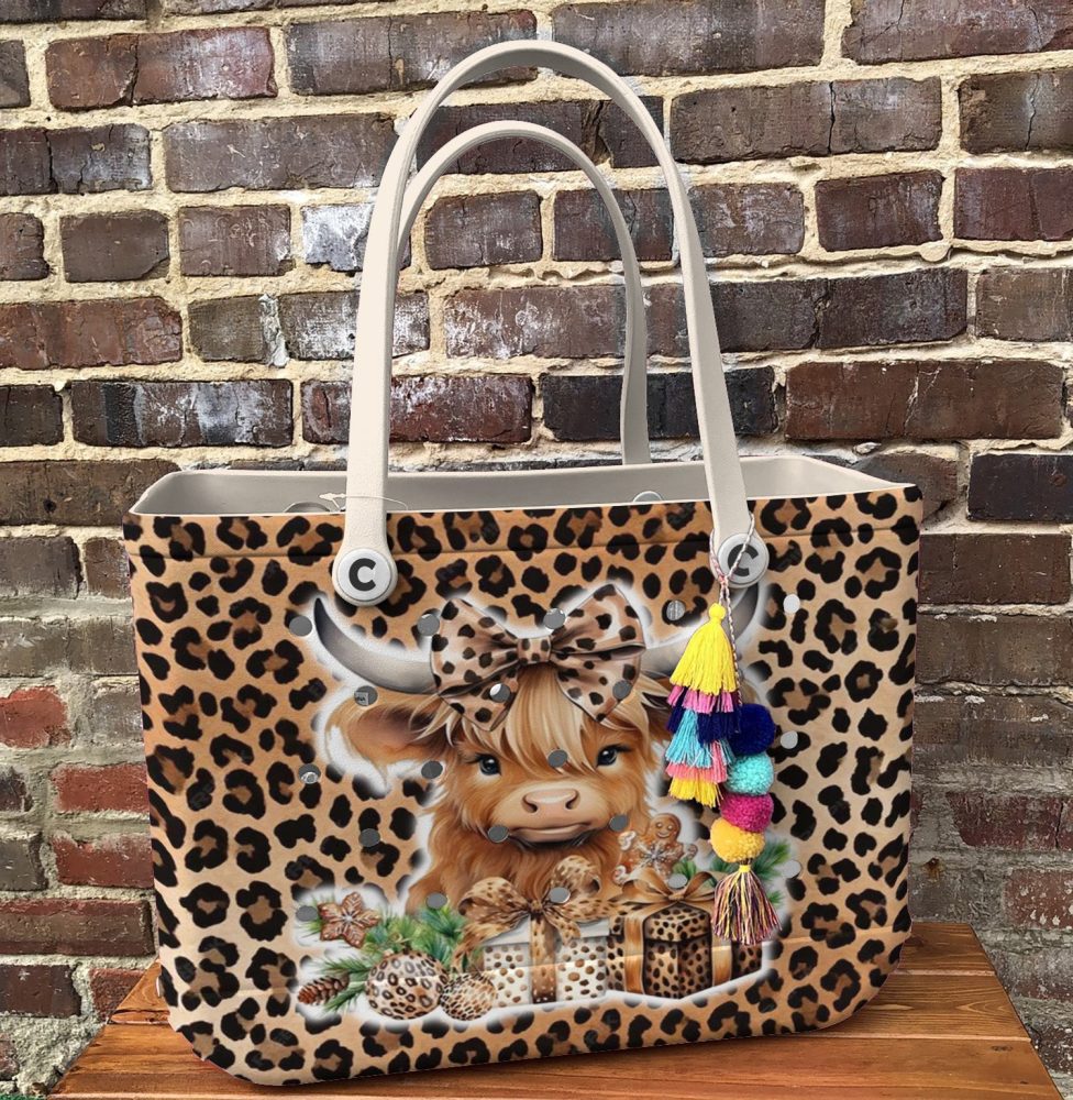 Be the first to review “Chic Leopard Print Tote Bag With Cute Highland Cow Design – Perfect For Shopping & Gifting!”