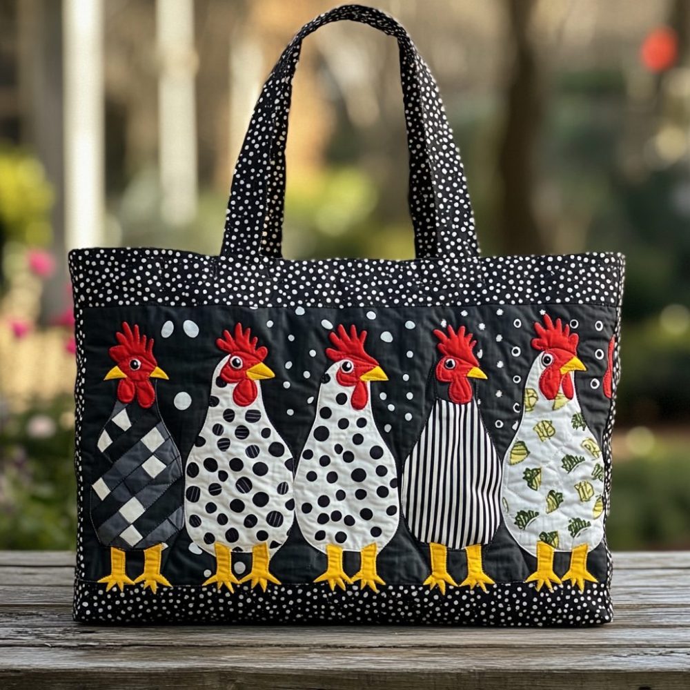 Chicken Parade Quilted Tote Bag