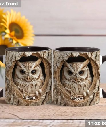 - High quality ceramic mug with two-tone rim, interior, & handle