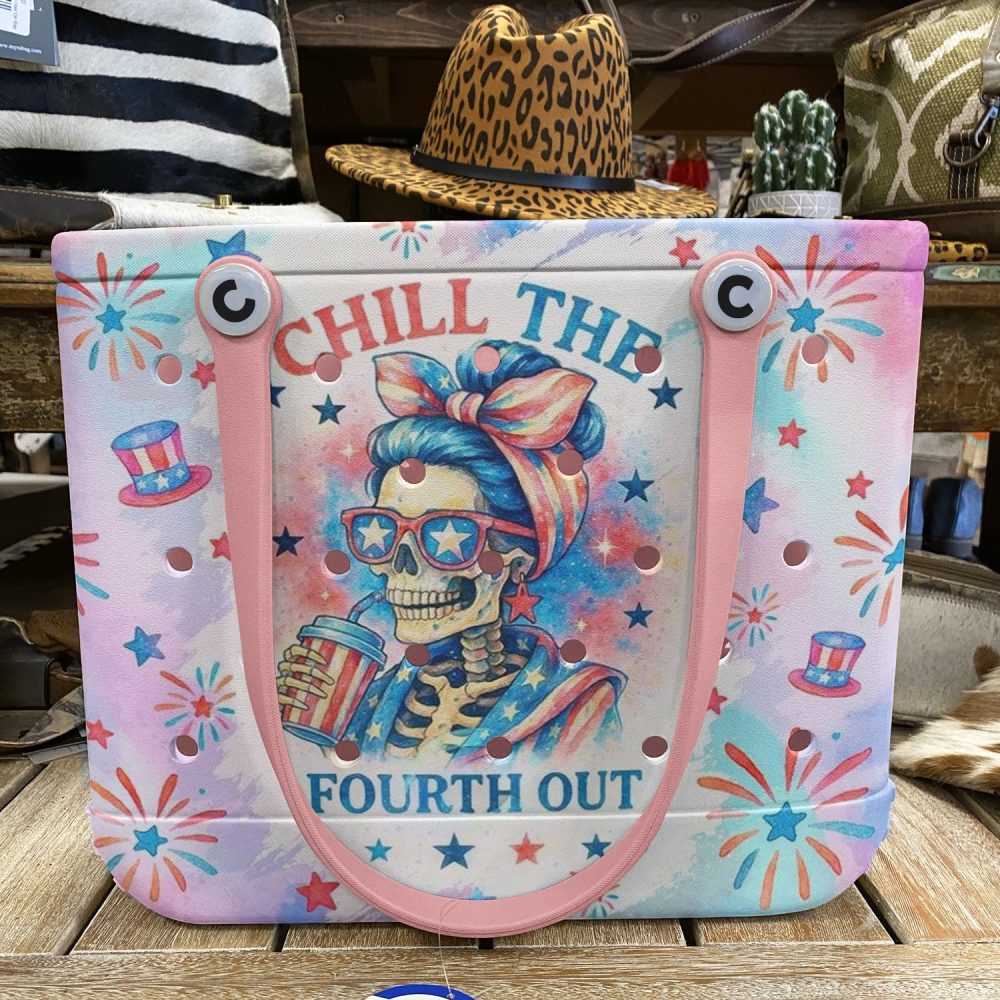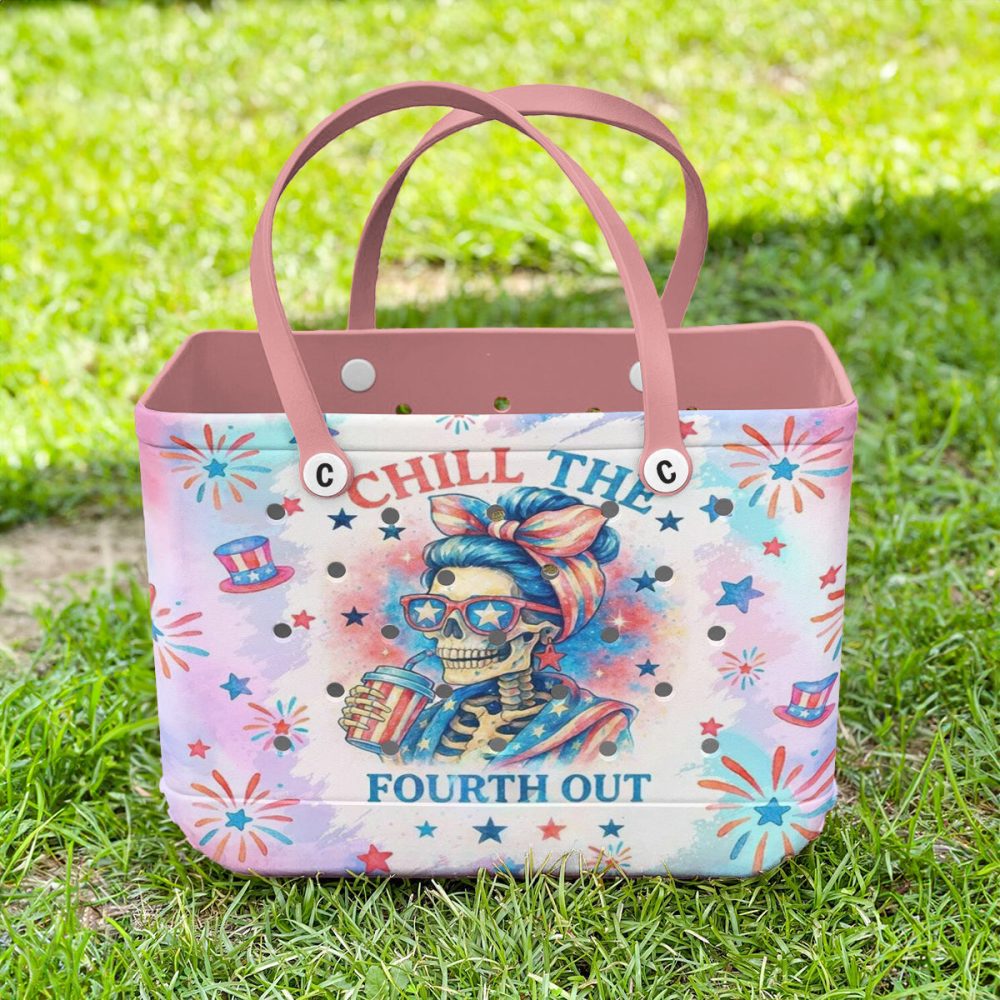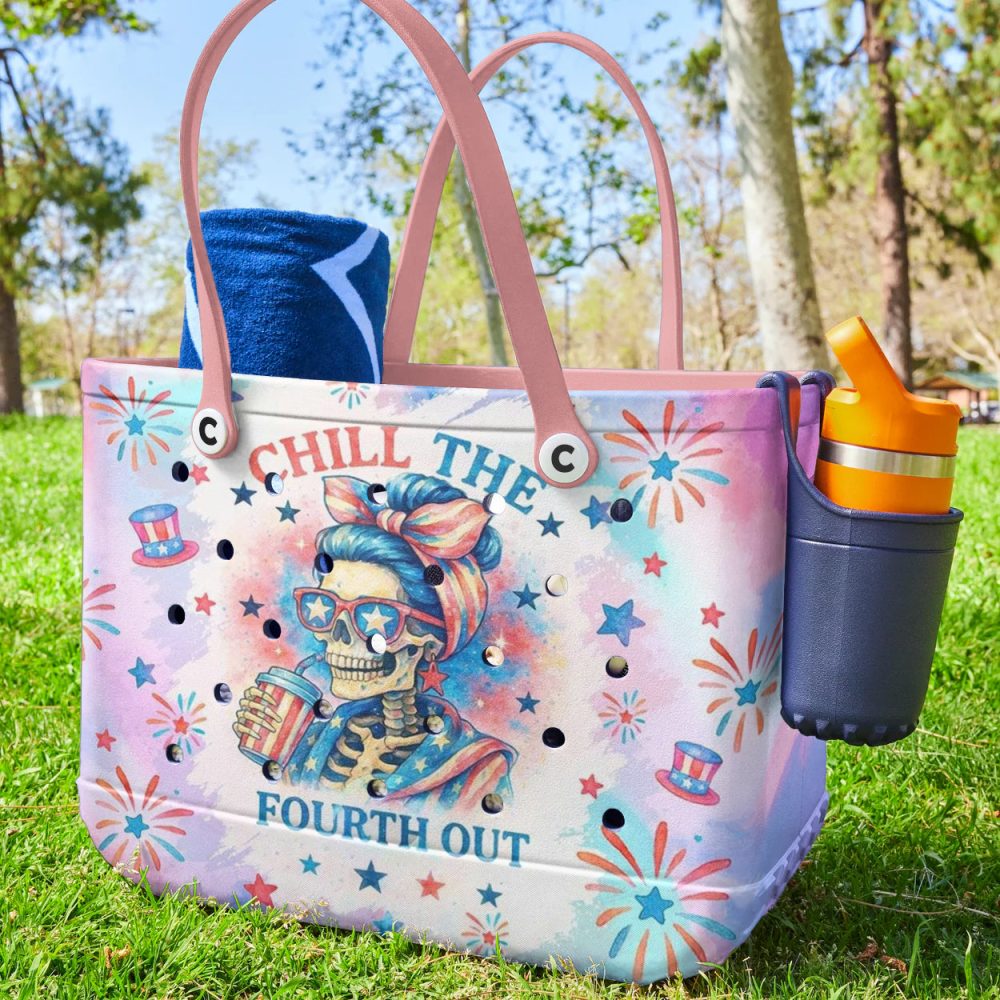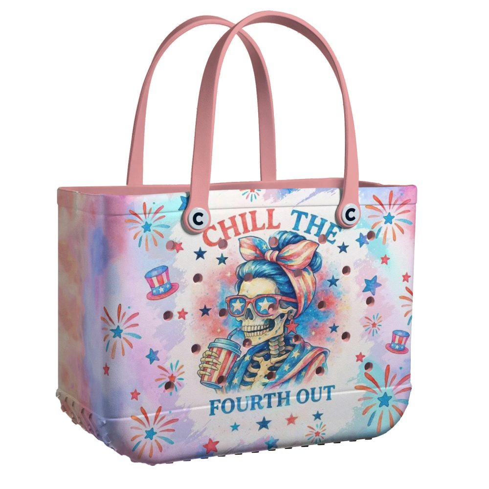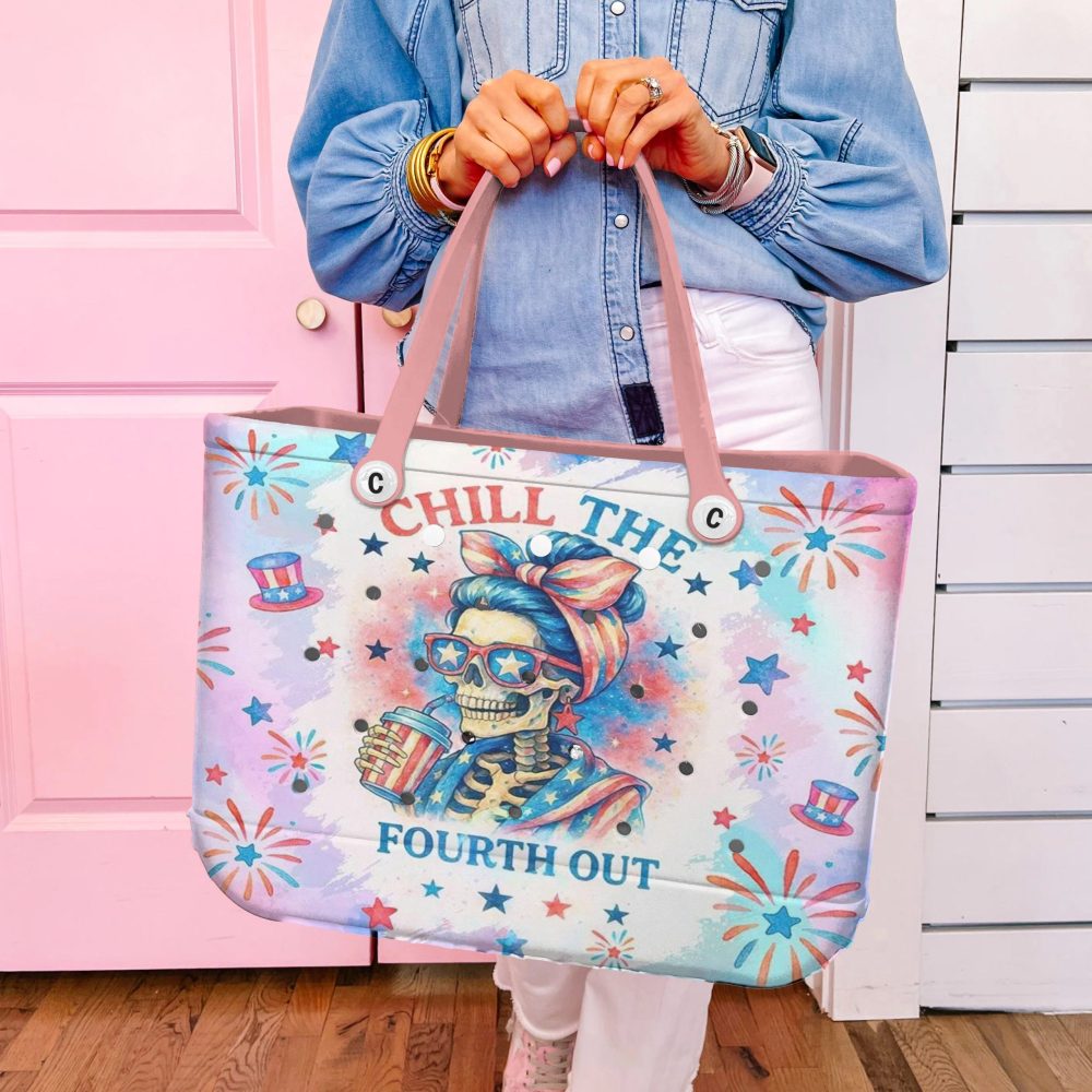 Be the first to review “Chill The Fourth Out Tote Bag – Stylish Skeleton Summer Beach Bag With Pink Handles”