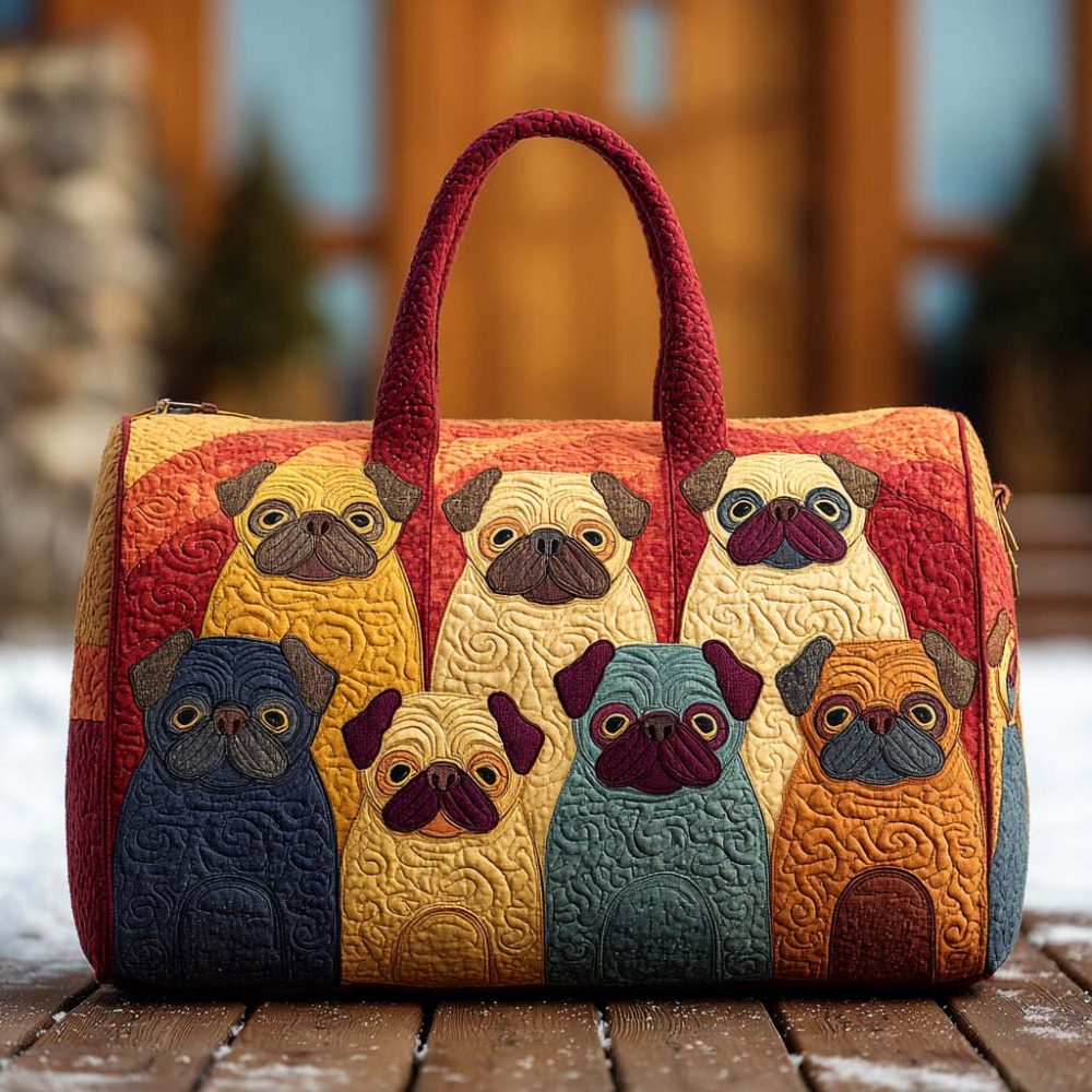 pug duffle bag, quilted travel bag, cute dog bag, gym bag for dog lovers, pet lover accessories, stylish overnight bag, unique travel gear, chonkster pug design, animal print duffle, fun gym bags, whimsical travel accessories, fashionable pet bags