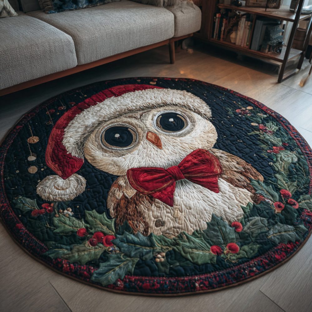 Christmas Owl Quilted Round Mat