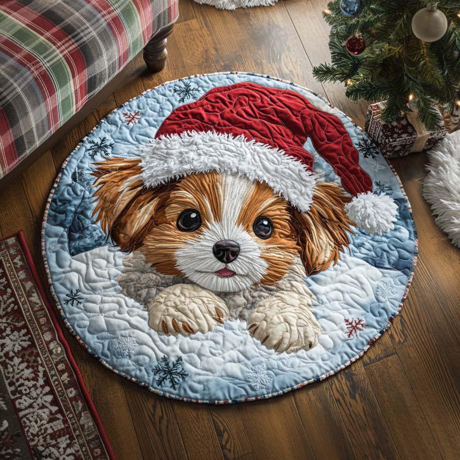 Christmas Papillon Dog Quilted Round Mat