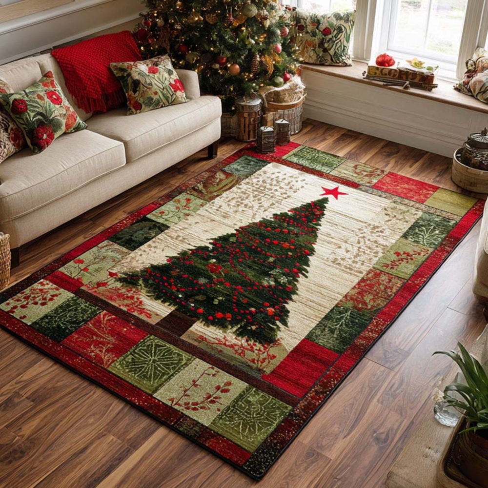 christmas tree rug,holiday tree skirt alternative,festive area rug,under tree rug,plush holiday rug,non-slip christmas rug,entryway tree rug