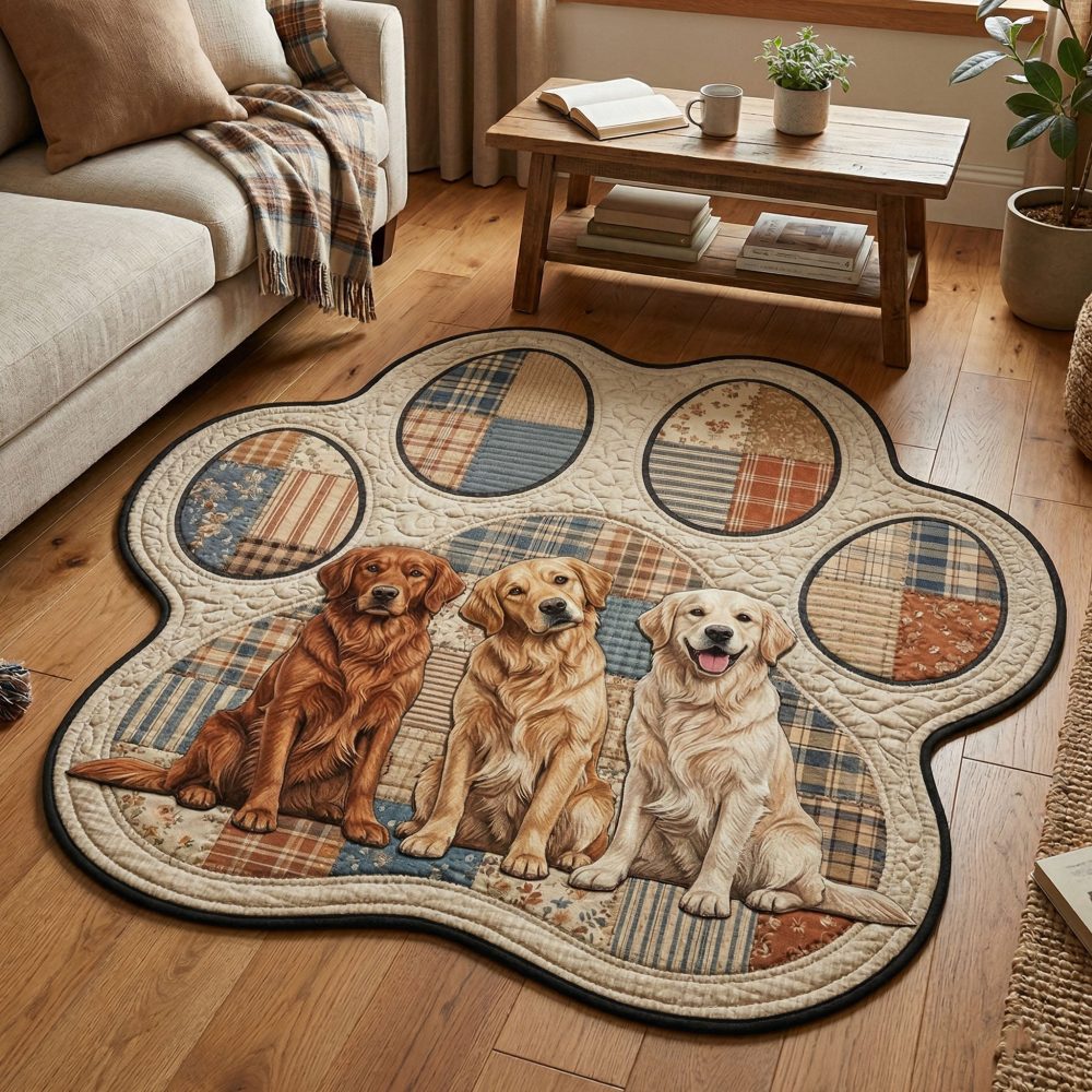 custom shaped rug,golden retriever rug,pet silhouette rug,plush low-pile rug,non-slip rug,unique area rug,pet-friendly floor mat