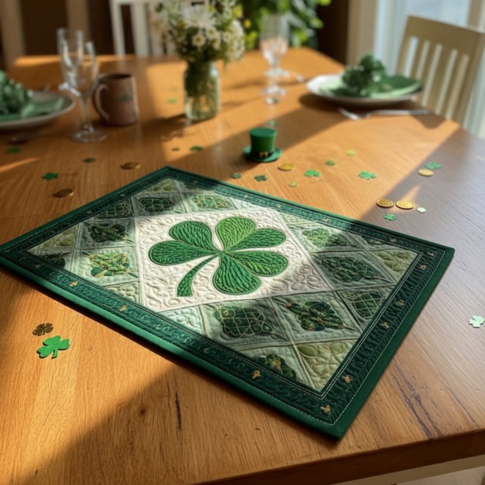 Invite luck and charm to your table with the Cloverlight Quilted Table Placemat. Featuring delicate clover motifs, this placemat enhances seasonal and everyday table settings with a subtle, cheerful look. The quilted texture provides protection from heat and spills while remaining soft to the touch and easy to clean. Ideal for St. Patrick’s Day, spring décor, or thoughtful gifting.