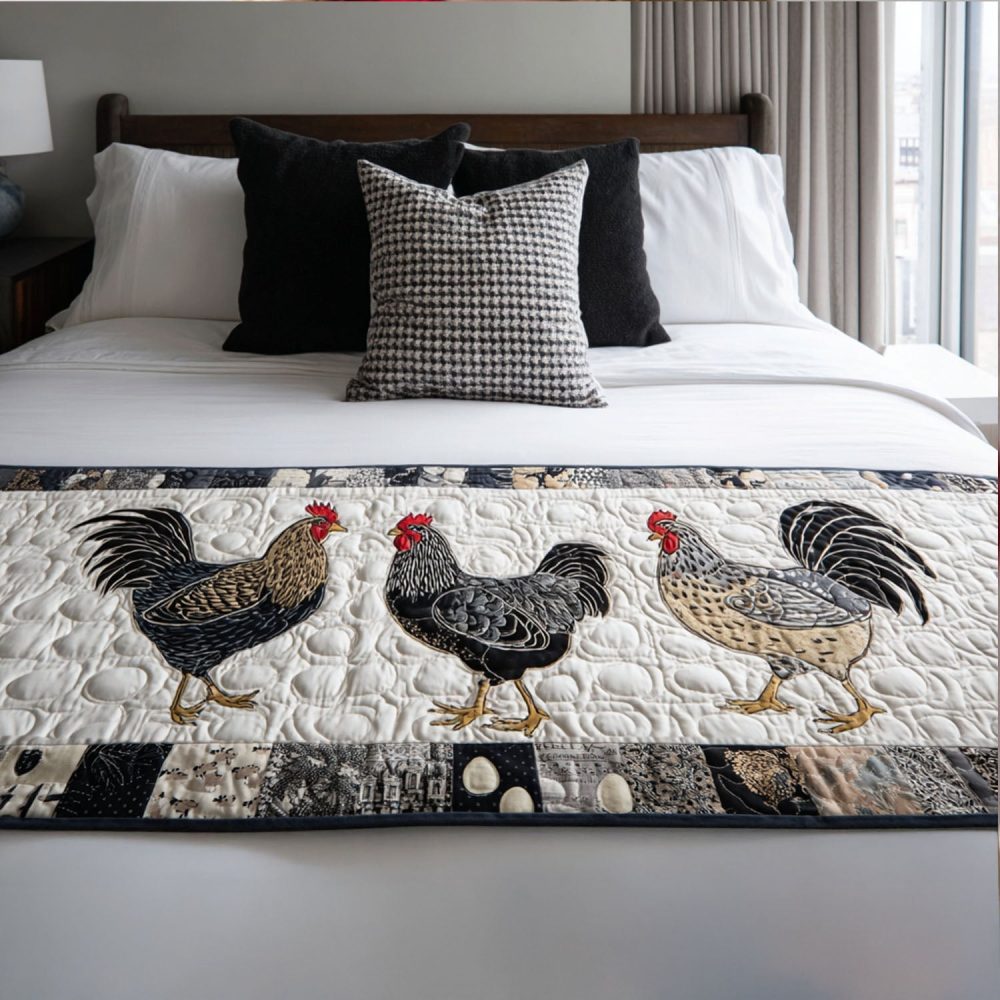 Cluck-Tastic Quilted Bed Runner – Playful Farmhouse Poultry Accent, Durable Cotton Blend For Queen & King Beds