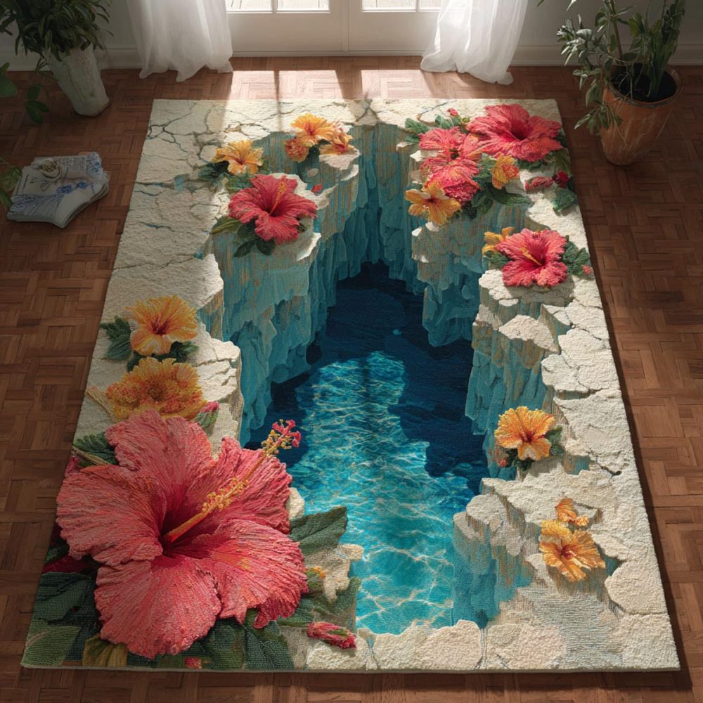 coastal floral rug, washable accent rug, low-profile rug, entryway rug, beach home decor, durable area rug, fade-resistant rug