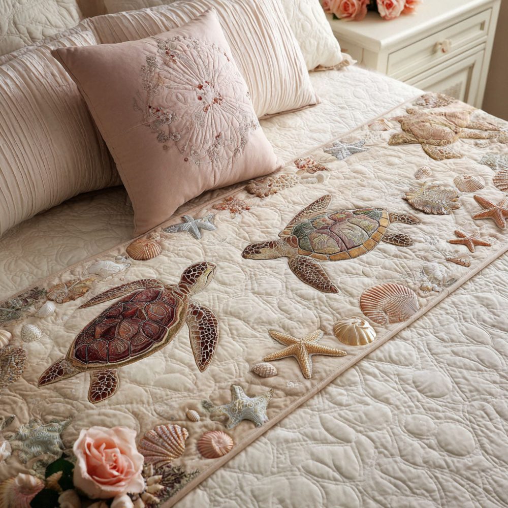 coastal bloom bed runner,nautical quilted runner,floral bed scarf,lightweight decorative throw,coastal bedroom decor,queen king bedding