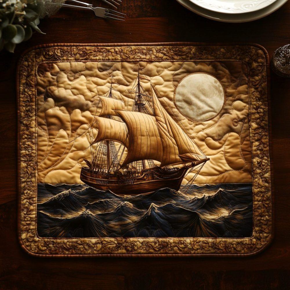 quilted placemat, nautical placemat, maritime table decor, heat-resistant placemat, machine washable placemat, coastal tableware