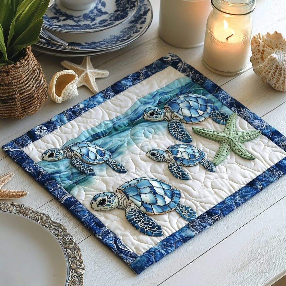 coastal placemat, quilted placemat, nautical table decor, heat resistant placemat, machine washable placemat, seaside table accessory, dining placemat padded