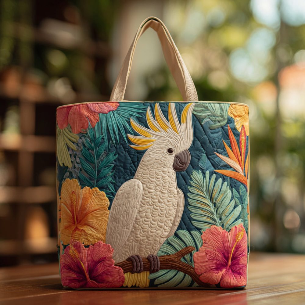 Cockatoo Tropical Foliage Quilted Tote Bag