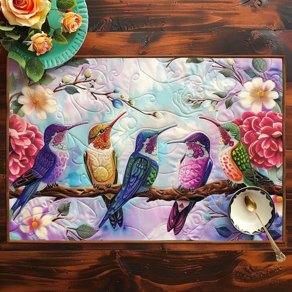 songbird placemat,colorful bird placemat,quilted table mat,reversible placemat,cotton placemat,bright table accent,machine washable,eclectic dining