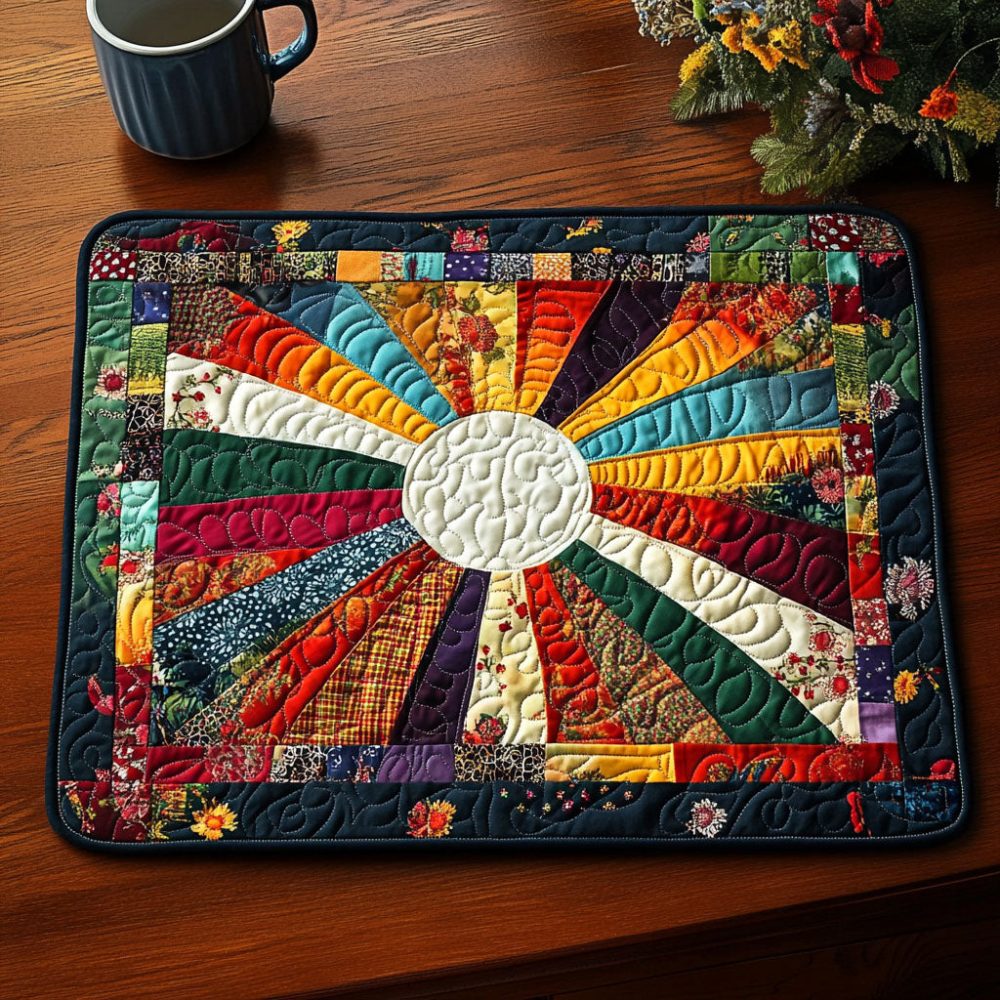 colorful quilted placemat,vibrant placemat,cotton dining mat,fade-resistant placemat,machine washable table mat,kitchen decor