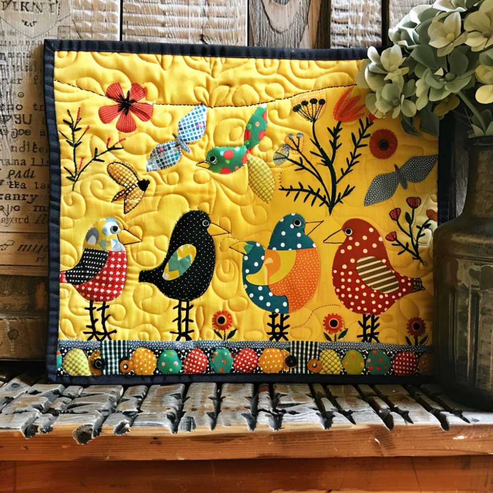 colorful garden birds placemat,bird and floral placemat,quilted dining mat,machine washable placemat,cotton blend table mat,casual entertaining placemat,kitchen decor,heat protection