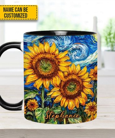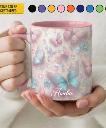 - High quality ceramic mug with two-tone rim, interior, & handle