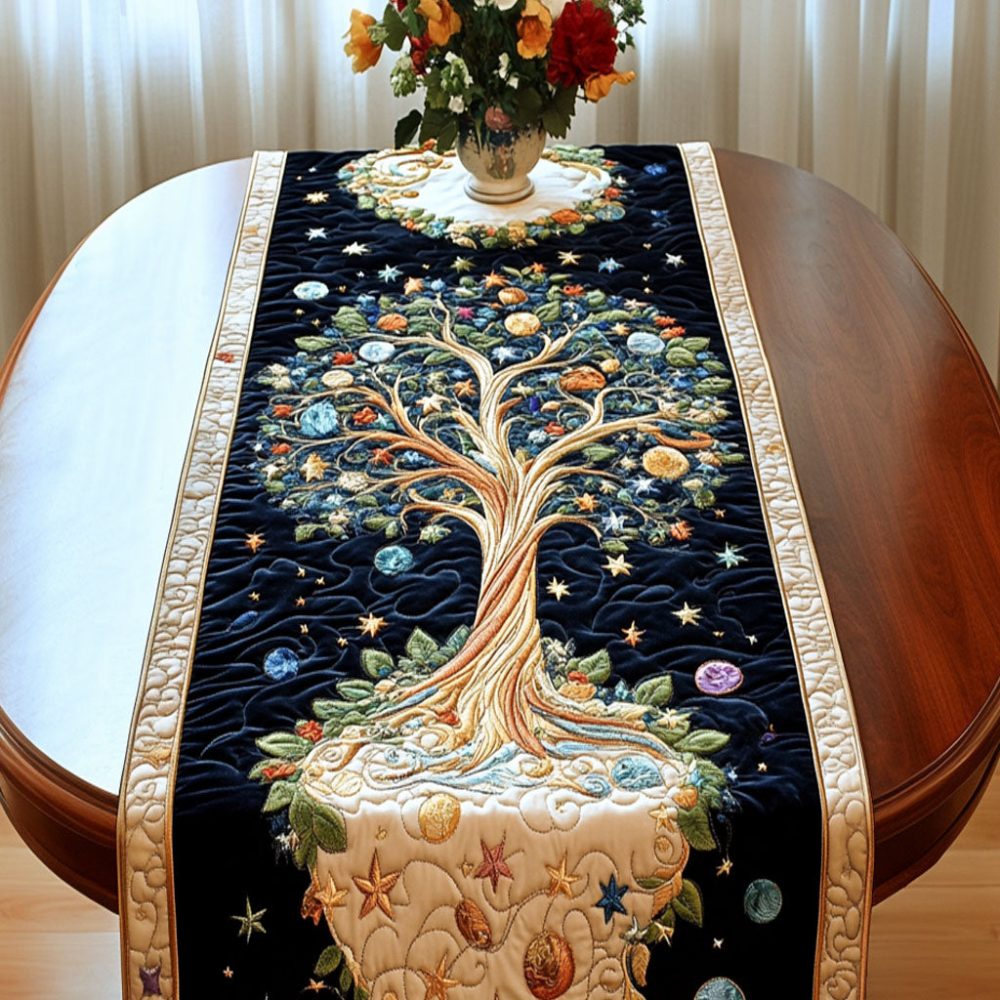Cosmic Tree Of Life Quilted Table Runner