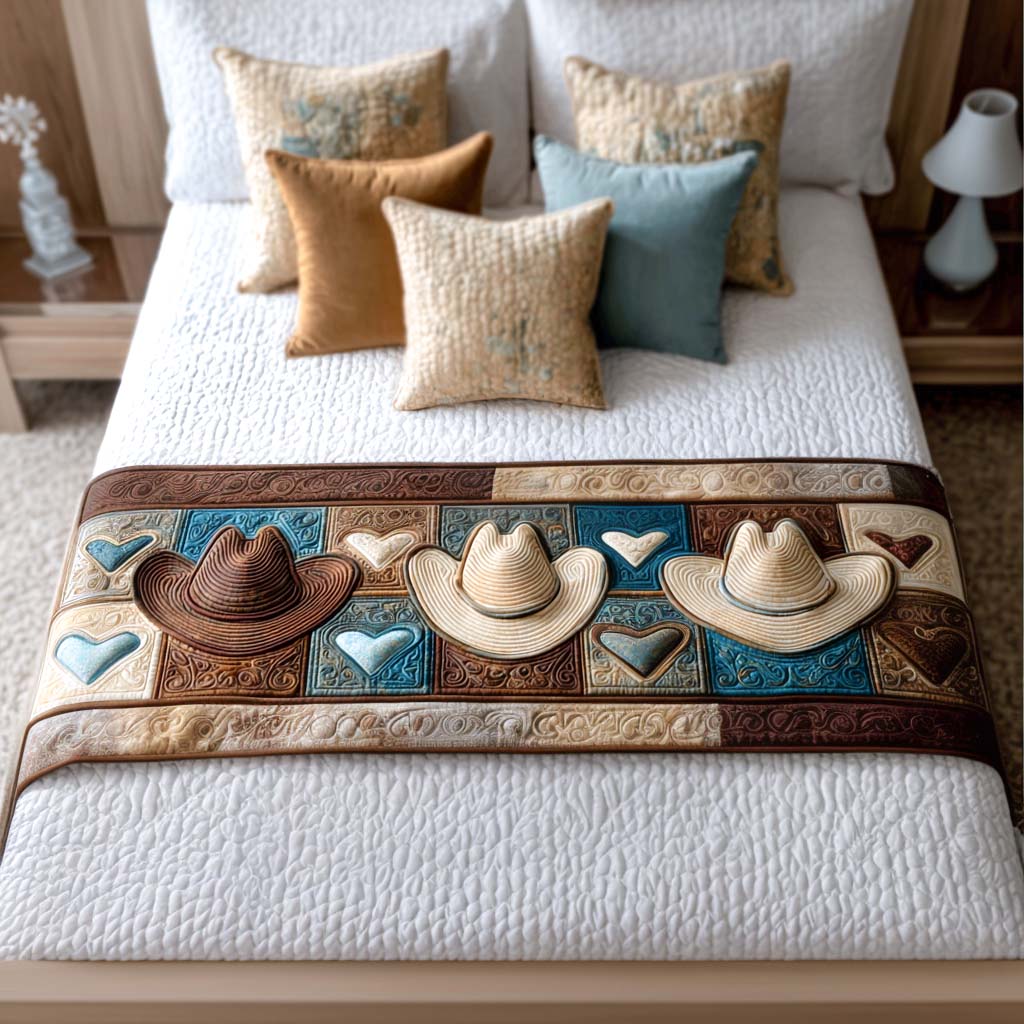 Cowboy Romance Quilted Bed Runner — Western Country Bedding Accent, Romantic Rustic Throw Runner For Beds, Durable & Machine Washable