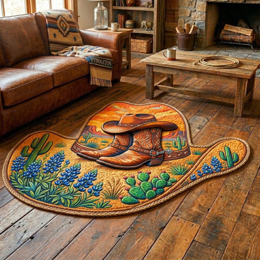 cowboy rug, western area rug, custom-shaped rug, rustic decor rug, non-slip western rug, kids room cowboy rug, cabin accent mat, durable floor rug