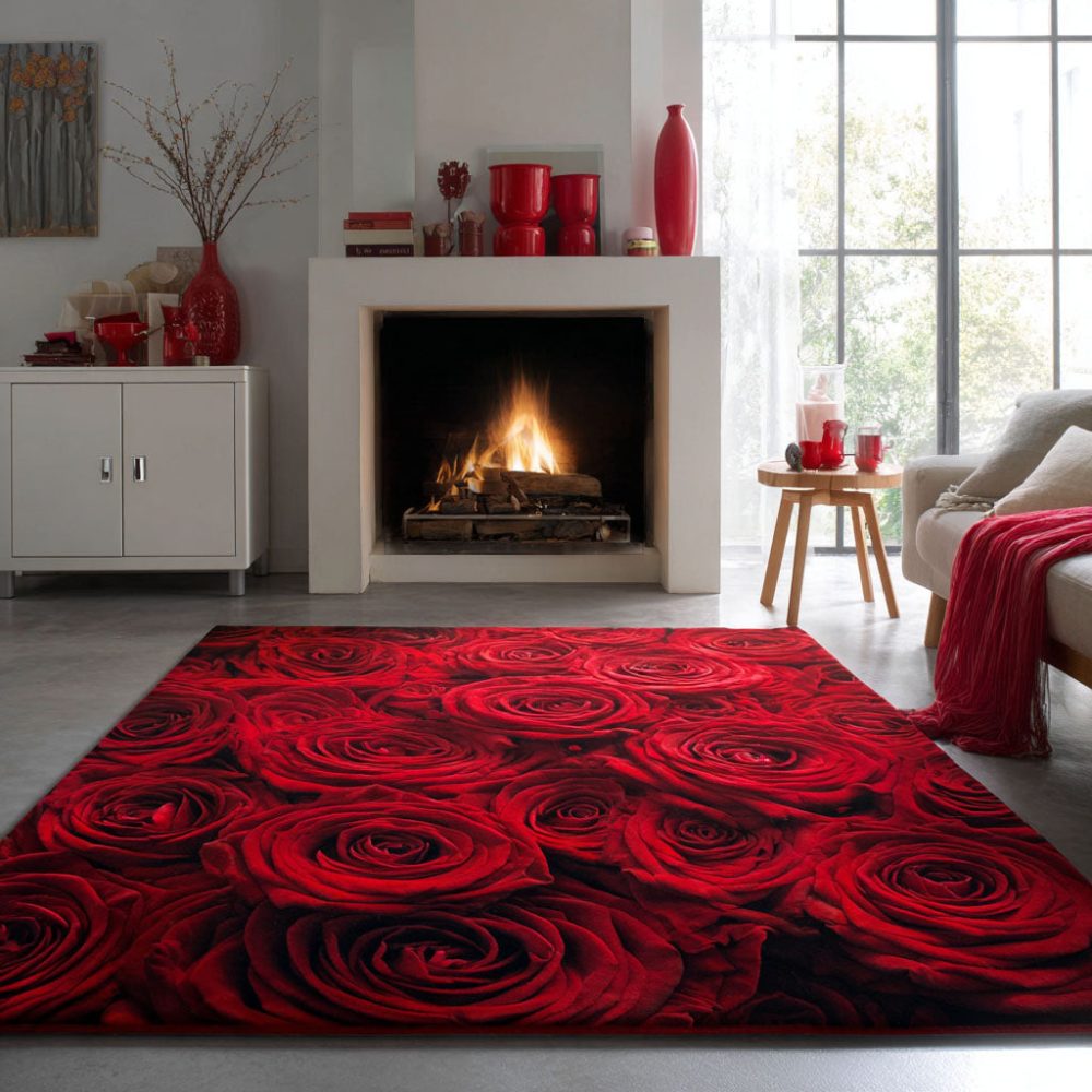 Crimson Bloom Floral Area Rug – Bold Red Botanical Accent For Living Room & Bedroom, Soft Plush, Fade-Resistant, Non-Slip Backing