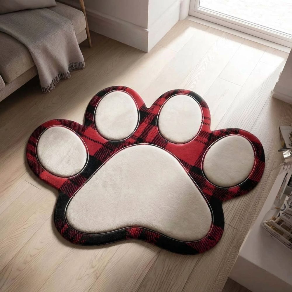 Crimson Highland Paw Pet-Shaped Area Rug — Cozy Custom Paw Rug For Pet Lovers, Playrooms & Nursery Décor