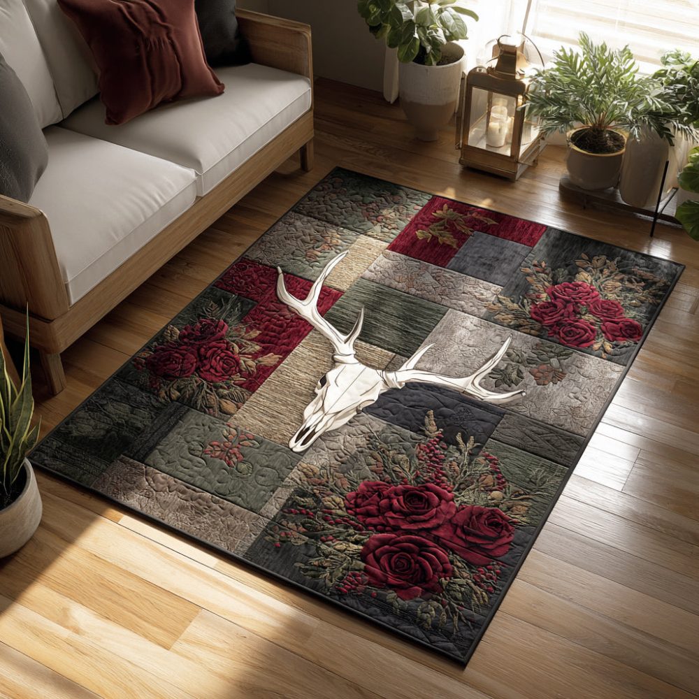 Crimson Longhorn Bloom Western Floral Area Rug — Bold Red Statement Rug For Entryway, Living Room & Farmhouse Décor