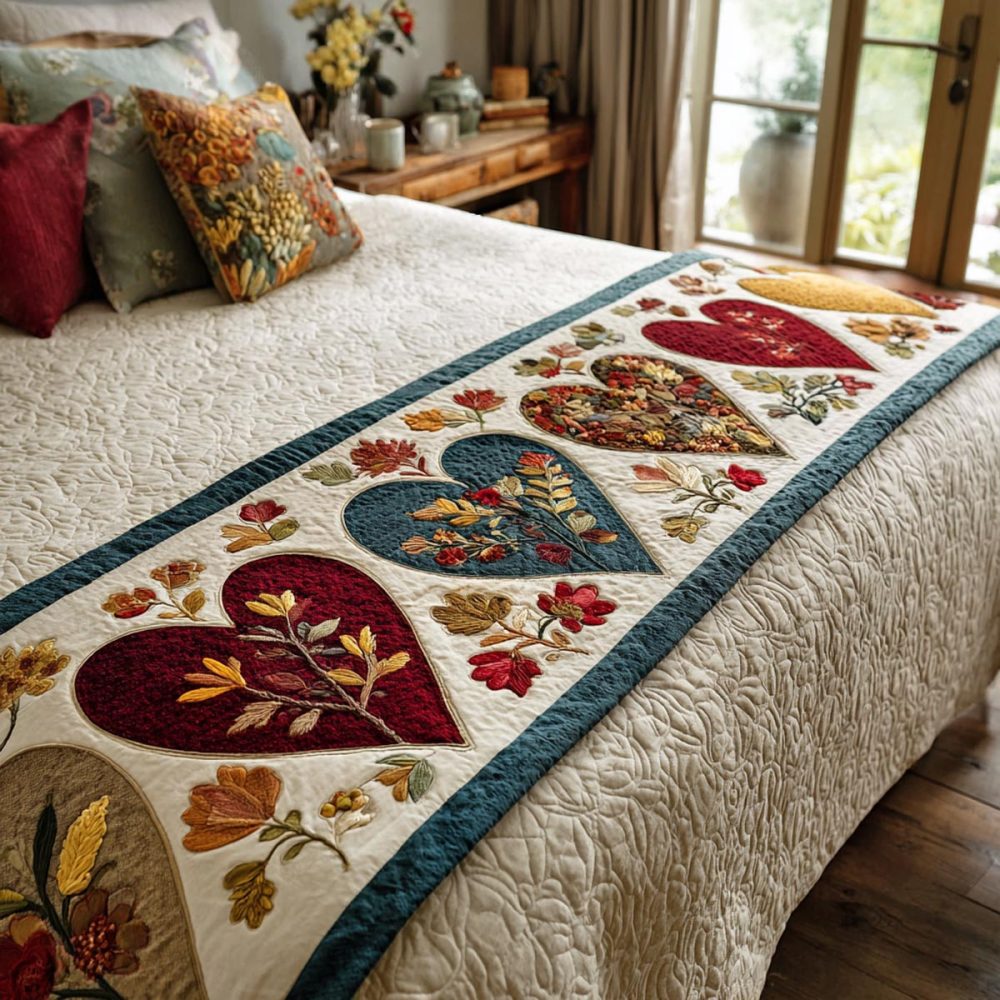 Crimson Love Quilted Bed Runner — Romantic Red Floral Bed Scarf For Master & Guest Bedrooms, Reversible Cotton Comfort