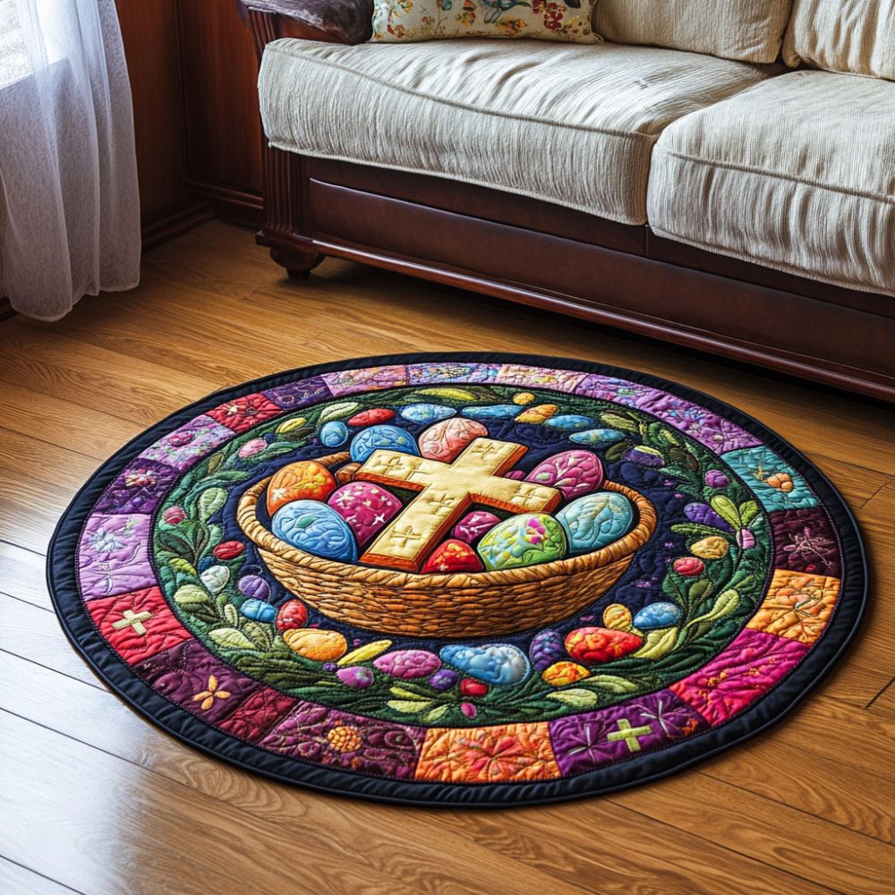Cross And Eggs Quilted Round Mat