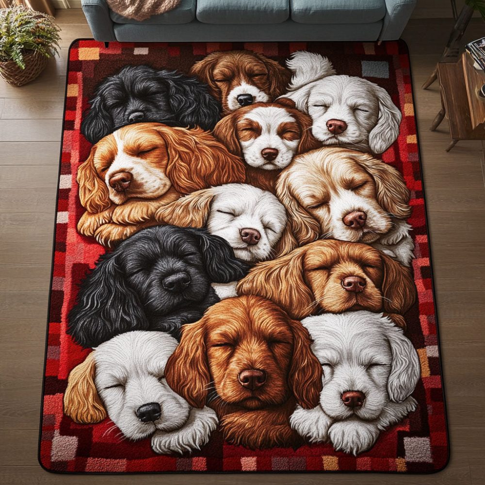 spaniel rug,dog rug,plush area rug,pet lover accent rug,nursery rug,hallway rug,low-pile polyester,entryway rug