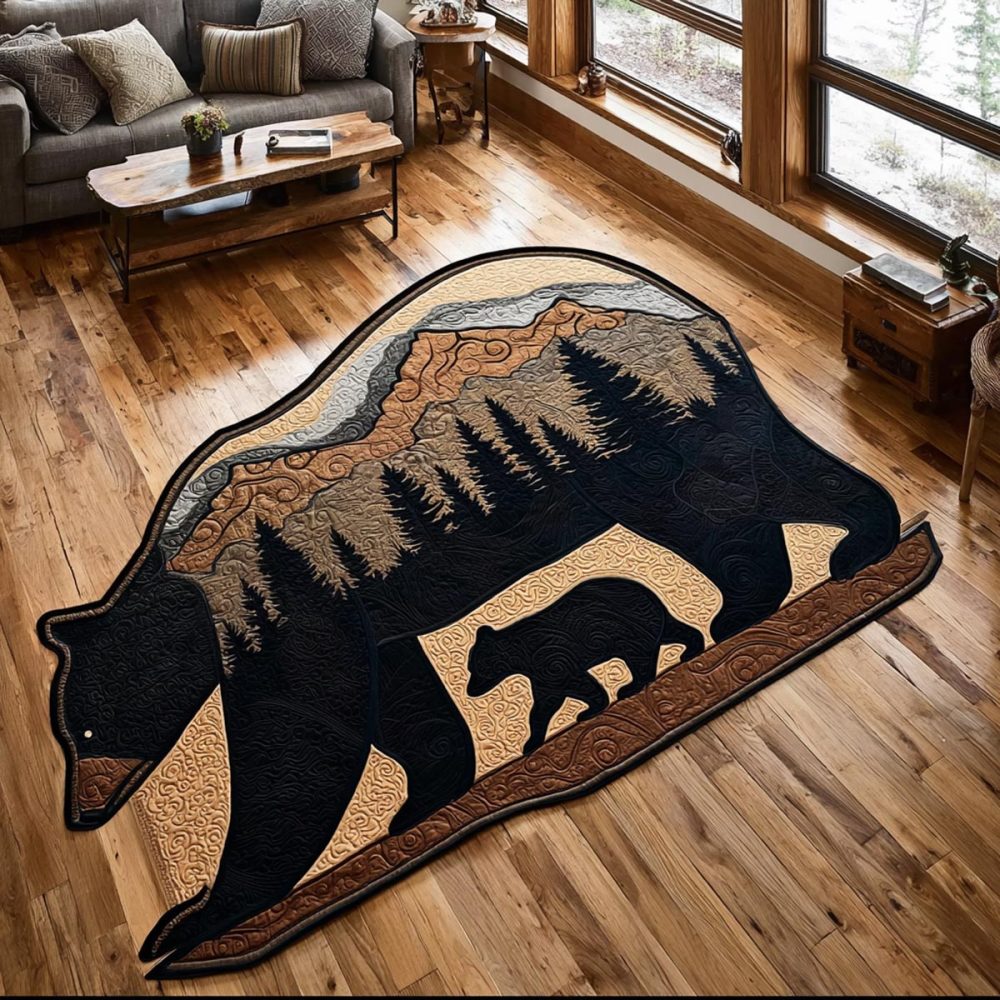 custom shaped rug,black bear rug,animal shaped area rug,custom cut rug,non-slip novelty rug,cabin decor rug,children’s room rug