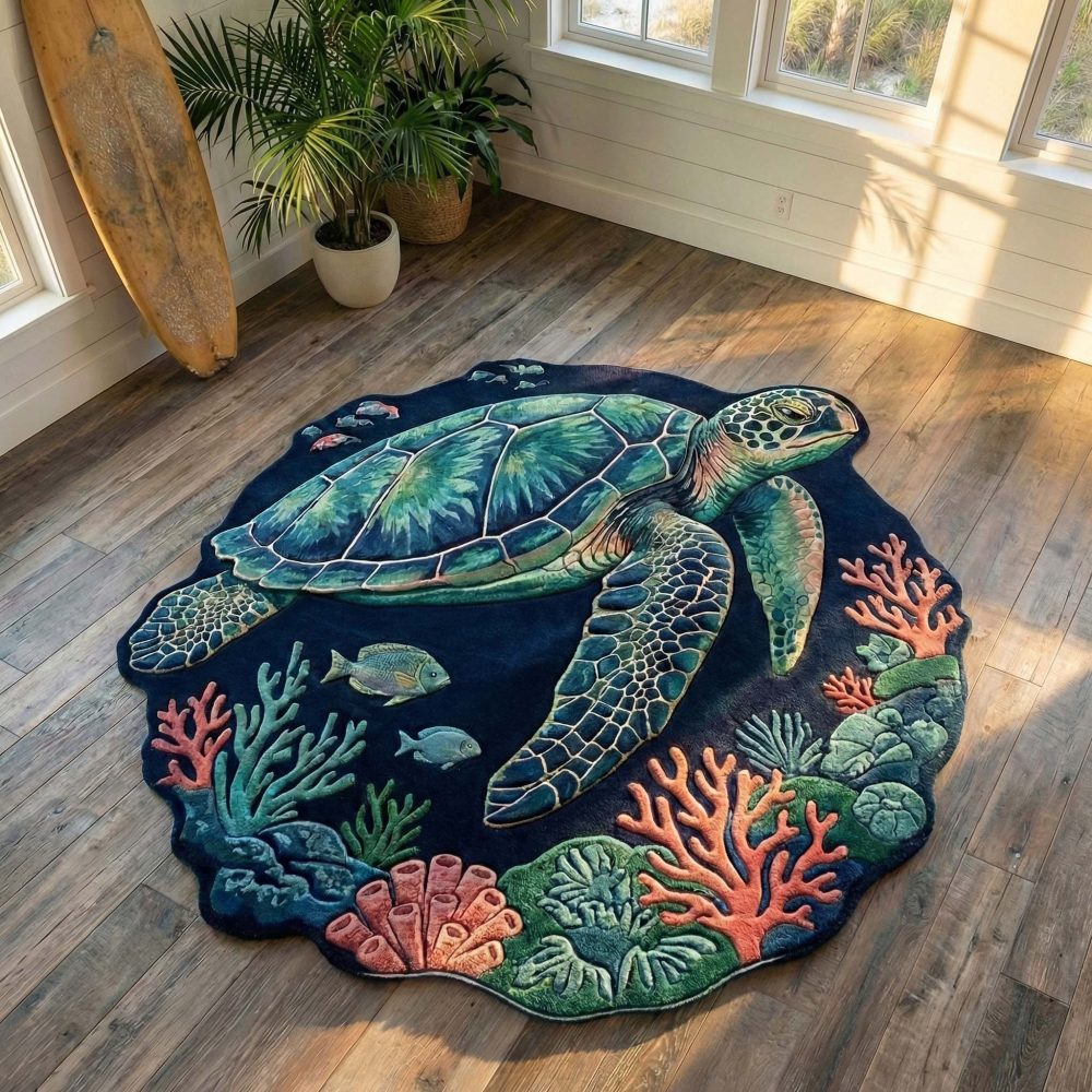 Custom-Shaped Deepsea Turtle Rug — Unique Contoured Marine Accent Rug, Plush Fade-Resistant Statement Piece For Coastal Rooms