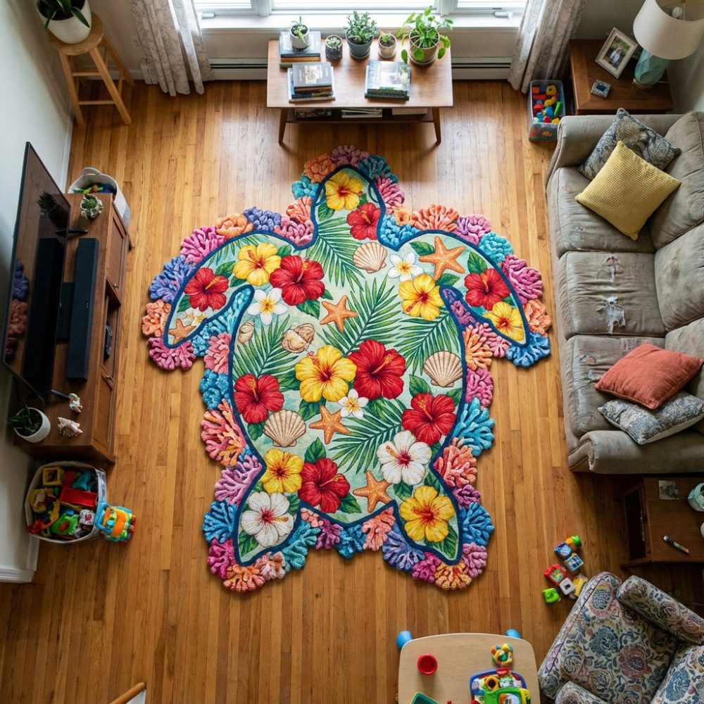 custom shaped rug,sea turtle rug,coastal shaped rug,custom area rug,non-slip accent mat,beach decor rug,made-to-order rug