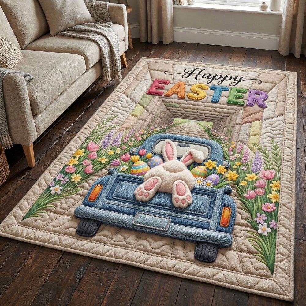 Easter truck rug, pastel pickup rug, floral truck area rug, spring entryway rug, kitchen rug, kids room Easter decor, seasonal accent rug