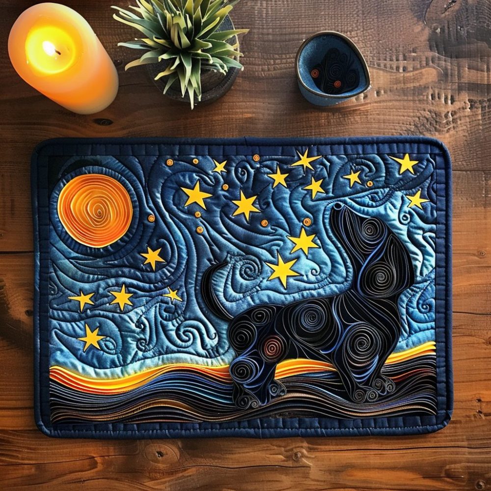 dachshund placemat,starry dachshund mat,quilted dog table mat,sausage dog decor,non-slip placemat,machine washable dog gift,pet lovers decor