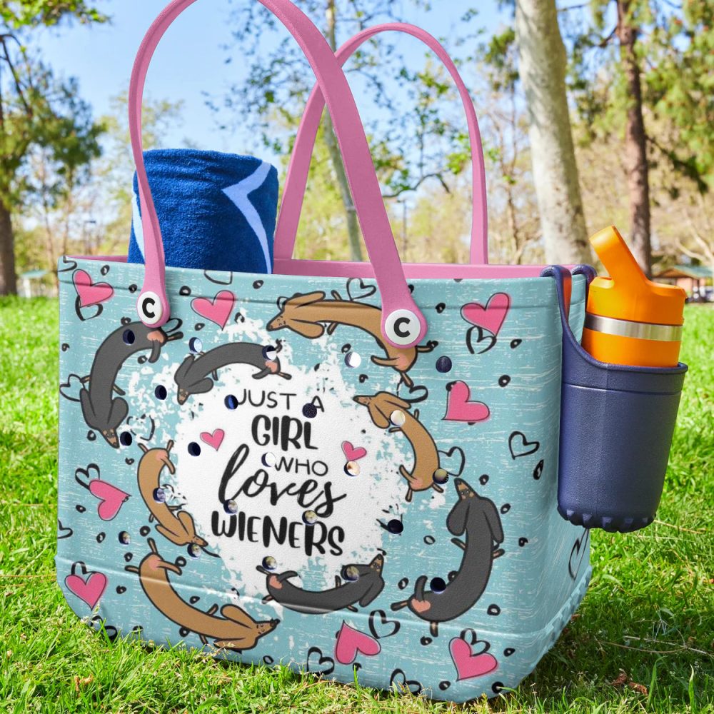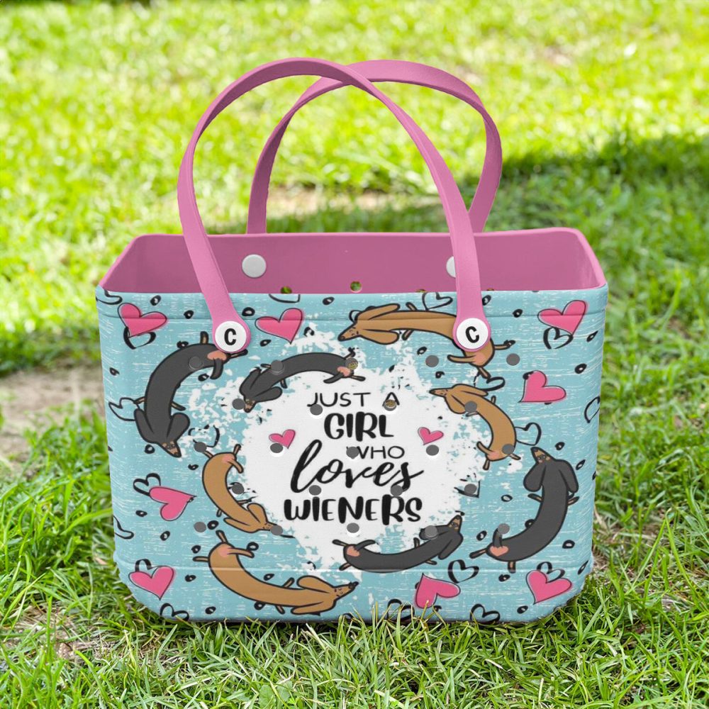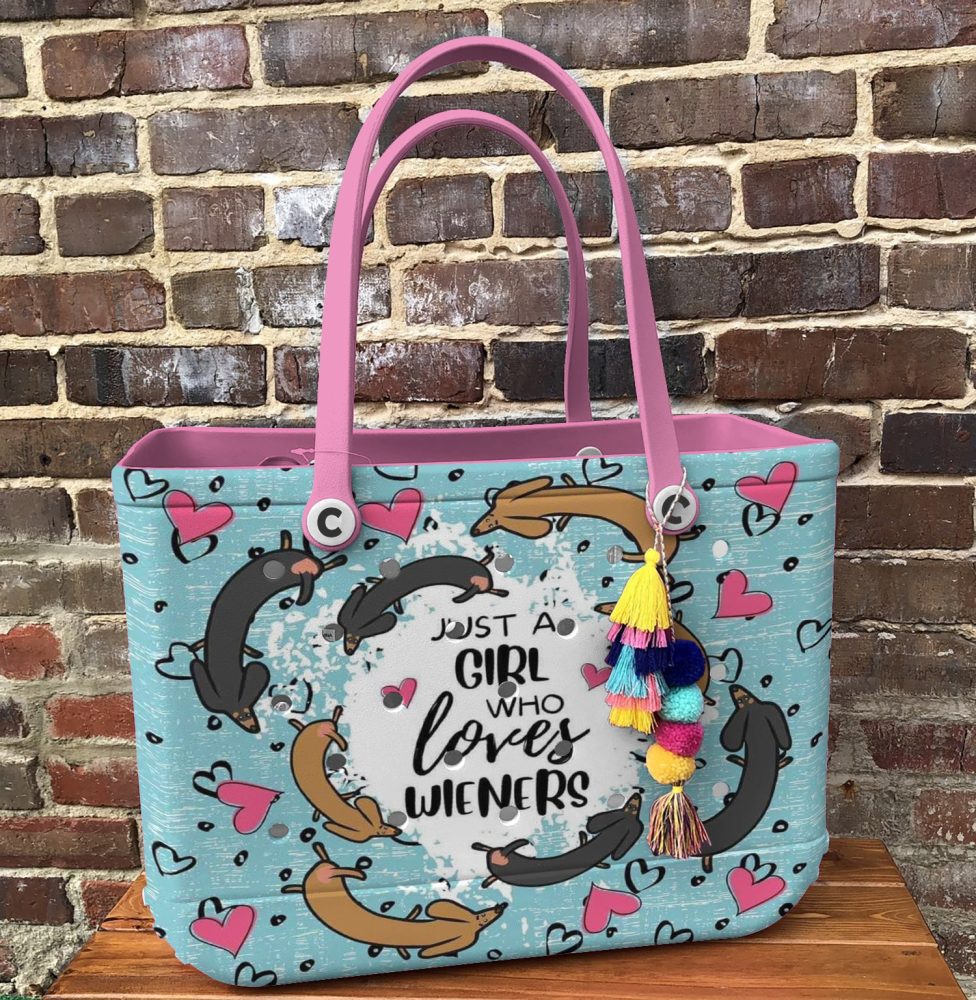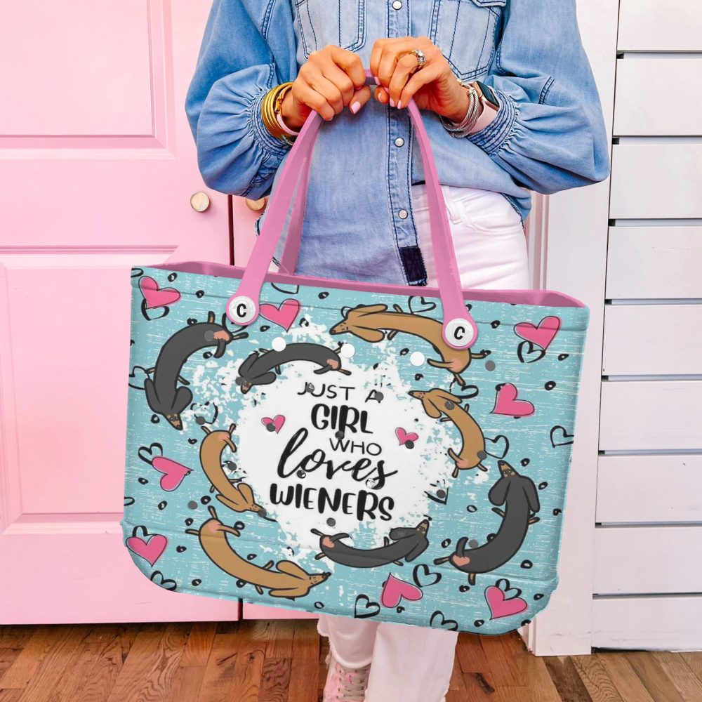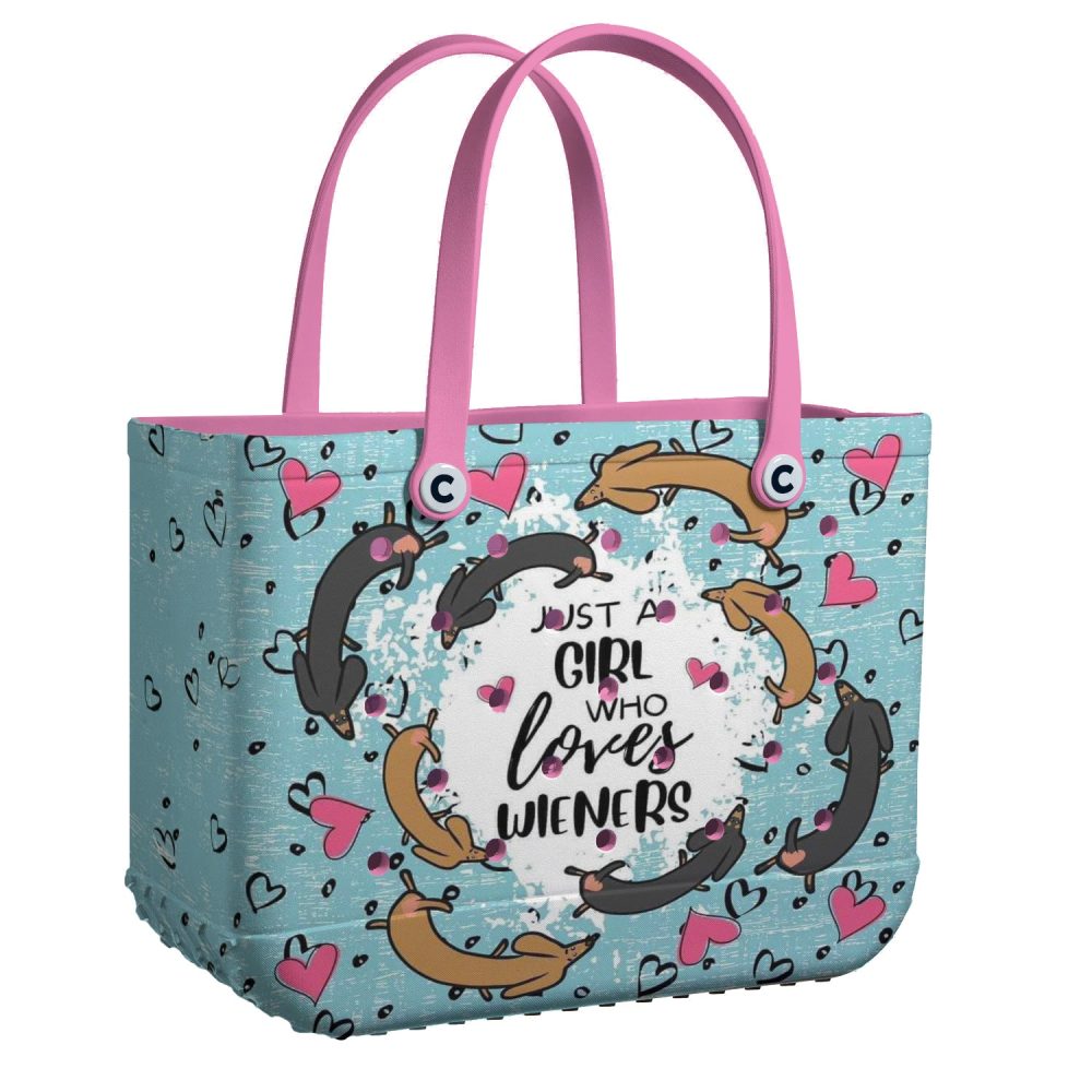 Be the first to review “Dachshund Lover Tote Bag – Cute & Stylish Wiener Dog Design With Pink Handles”