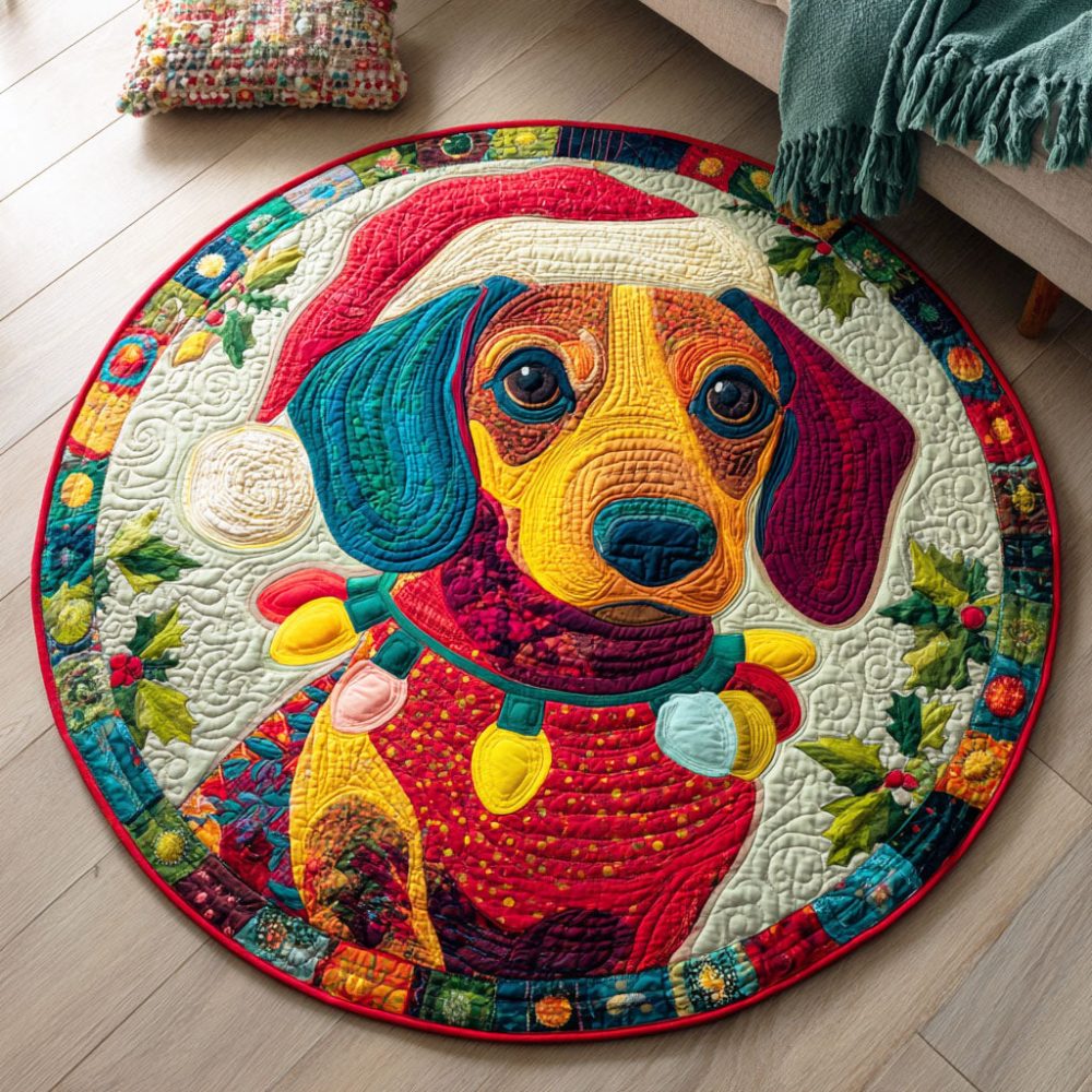 Dachshund Stocking Quilted Round Mat