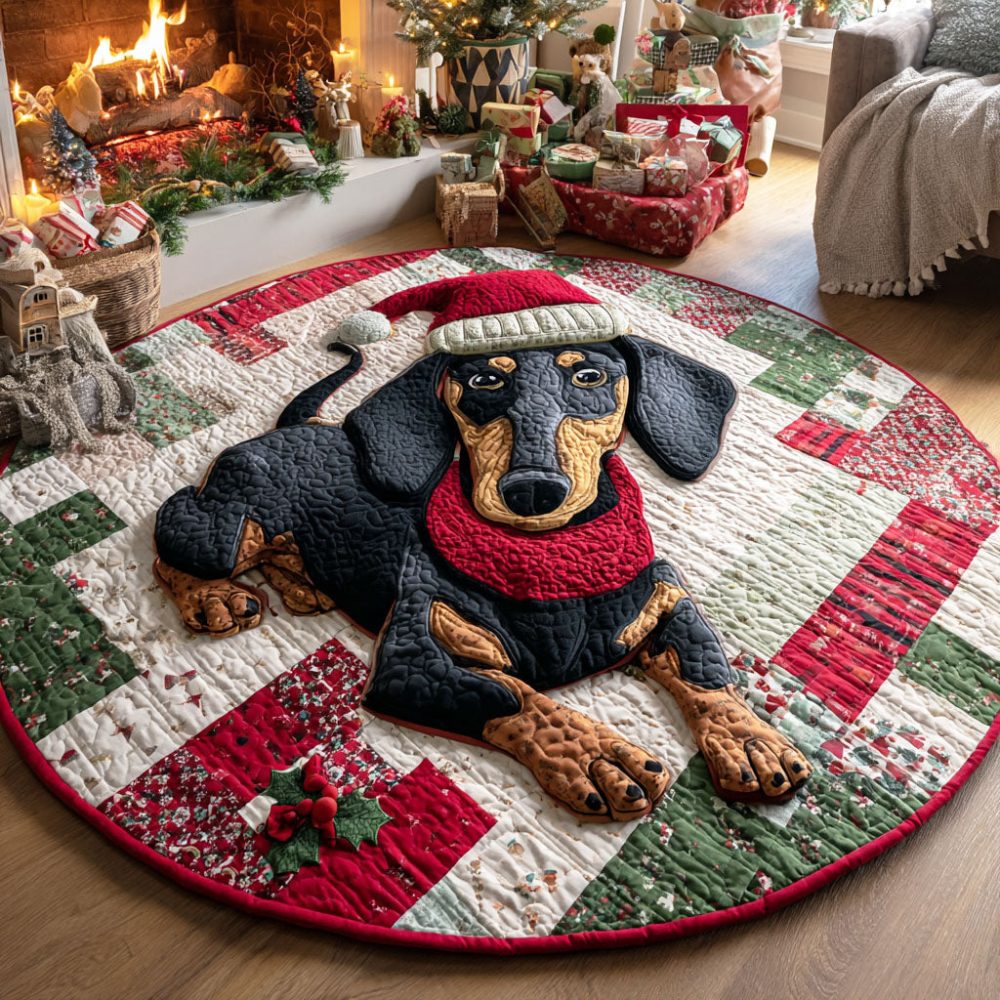 Dachshund Wreath Quilted Round Mat