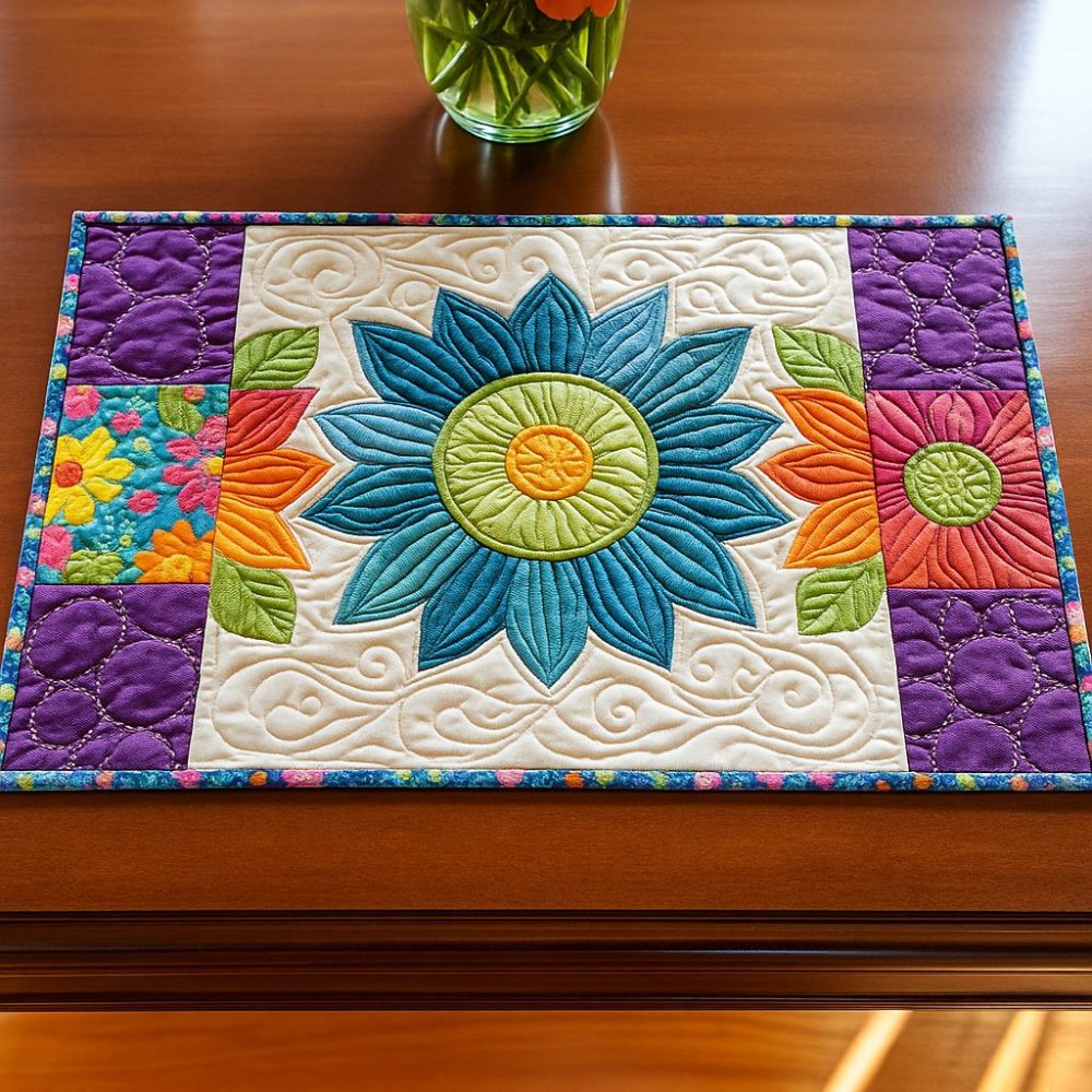 Add a sunlit floral accent to your dining table with this quilted placemat. Designed for everyday use and special gatherings, it offers durable stitched construction to protect surfaces from spills and light heat while enhancing table settings with warm, cheerful tones. Easy-care and machine-washable for convenient upkeep — ideal for gifting and seasonal tabletop refreshes.